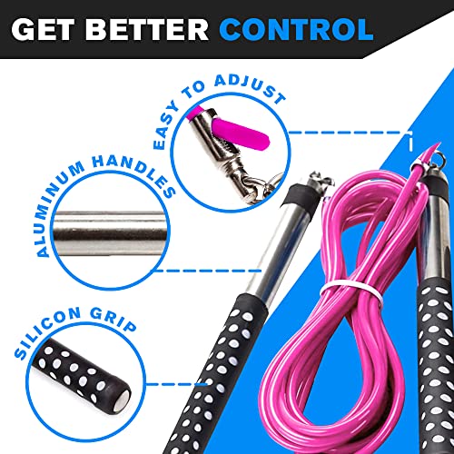 LIMITED TIME OFFER- DYNAPRO JUMP ROPE (Long Aluminum Handles 10' Adjustable PVC Speed Cable) for Boxing Cardio HIT Workouts and Home Gym Fitness Exercise