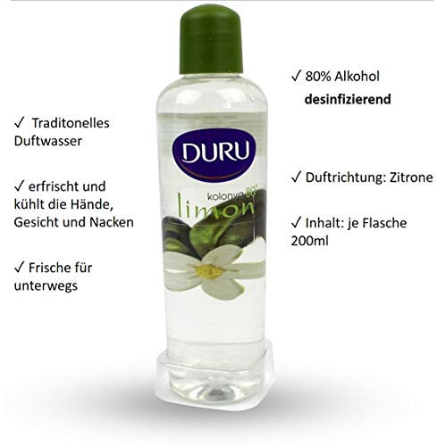 Duru Limon - Acqua di Colonia turca al limone, set di 3 flaconi da 200 ml ciascuno