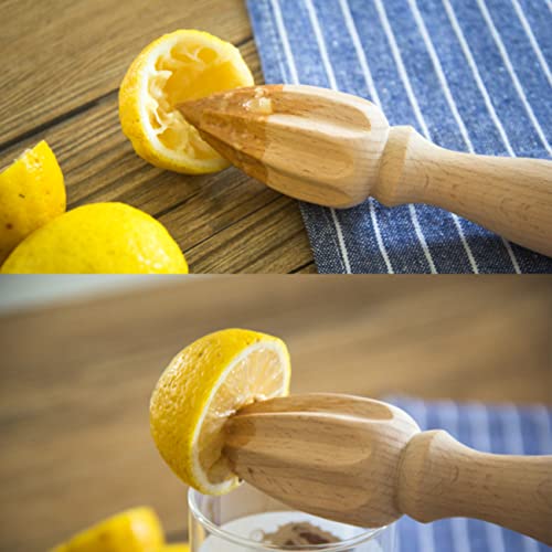 【Pressa per limone fatta a mano in legno】 Il materiale in legno non reagisce con l'acido del frutto. Basta estrarre metà del frutto,spingere la punta e ruotarla! Le scanalature più grandi forniscono ogni volta la maggior quantità di succo.
