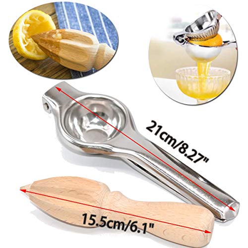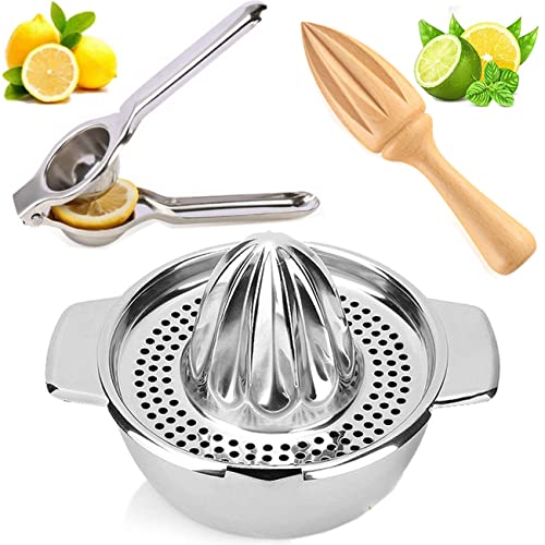 Limone Pressa Acciaio Inox,Saijer Spremi Limone Con Contenitore 500 ml Limone Squeezer In Legna Lime Manuale Per Juicing 3 PCS
