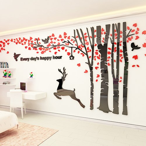 LINA-Forest deer 3D creative crystal acrilico solido muro albero decorazione divano letto poster, b-rosso,3500*1460mm camera per bambini