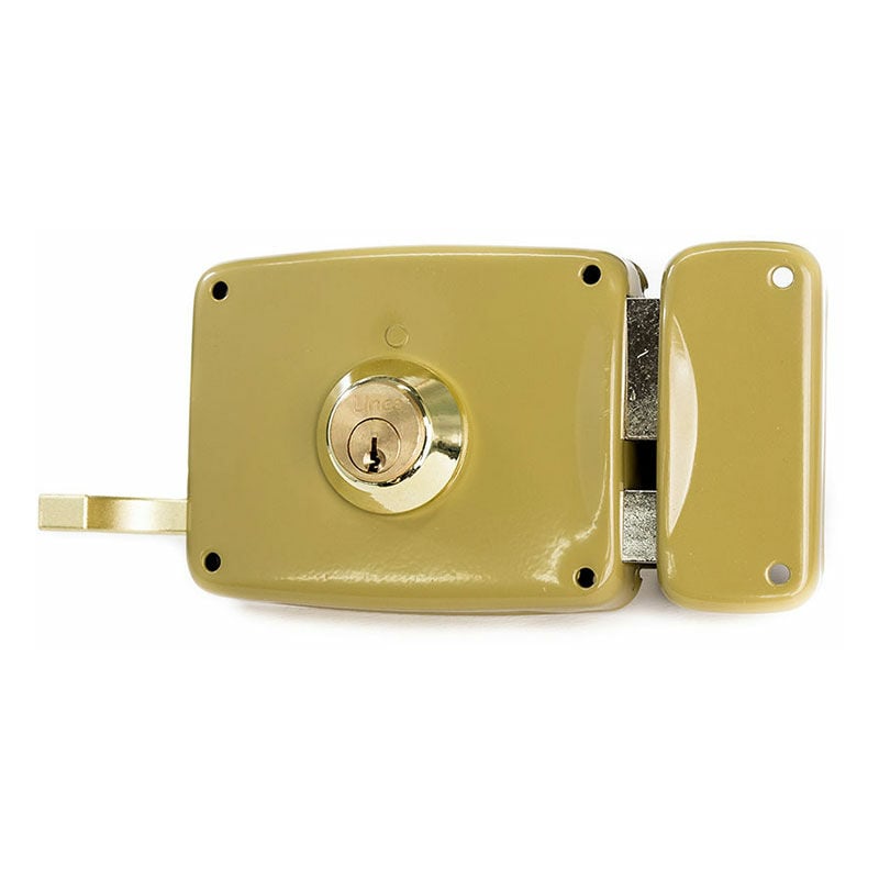 Serratura da infilare 5125a ingresso destro 100 mm. 95125ahe10d lince serratura da infilare 5125a. quando non è possibile installare una serratura da infilare, le serrature da infilare sono la soluzione giusta. lince offre un'ampia gamma tra cui scegliere. è la sicurezza che si vede. serie dotata di tubo di chiusura girevole. serratura con chiusura a scrocco, azionata dalla maniglia incorporata e leva scorrevole con 2 giri di chiave sui modelli 8 e 10, e 3 giri sui modelli 12 e 14. Viene fornita con 3 chiavi dentate in acciaio al nichel e una rosetta decorativa. finiture: oro a due strati o argento a due strati. dimensioni della confezione: 10x15x9,7 cm. peso: 0,965 kg.