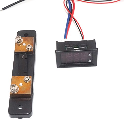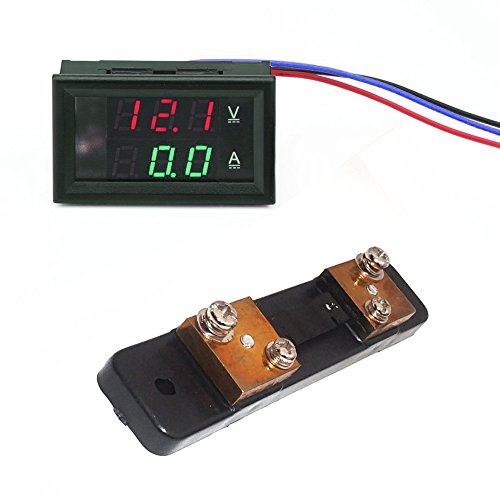 Linchview Mini tubo digitale 3 cifre 0,28 LED amperometro/voltmetro Dual Display di corrente Tester di tensione DC 0 - 99,9 V/50 a doppio display per auto auto batteria Monitor display a led con Current Shunt (rosso con verde)
