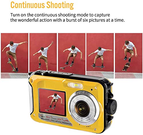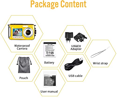 [Doppio schermo] La fotocamera subacquea è dotata di due schermi, un display a colori da 2,7 pollici e uno schermo frontale ausiliario da 1,8 pollici. La ffotocamera subacquea digitale è molto facile da usare e con l'autoscatto da 2/5/10 secondi integrato per andare d'accordo con tutti i ragazzi, non perdere mai un momento dell'azione durante una riunione di amici. Un cinturino da polso è incluso nella confezione per un facile utilizzo in acqua.