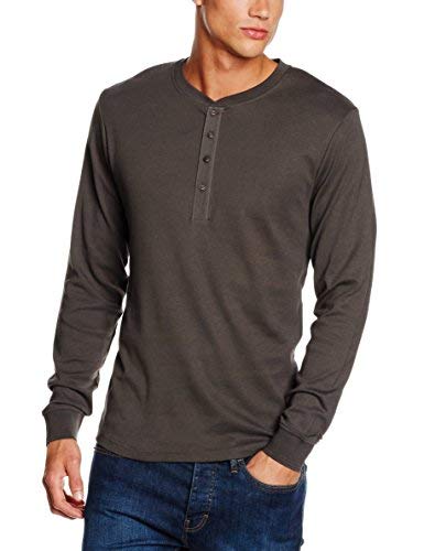Lindbergh Solid And s. Dyed Granddad L/S T-Shirt, Grigio (Dk Stone Dk Stone), XL Uomo