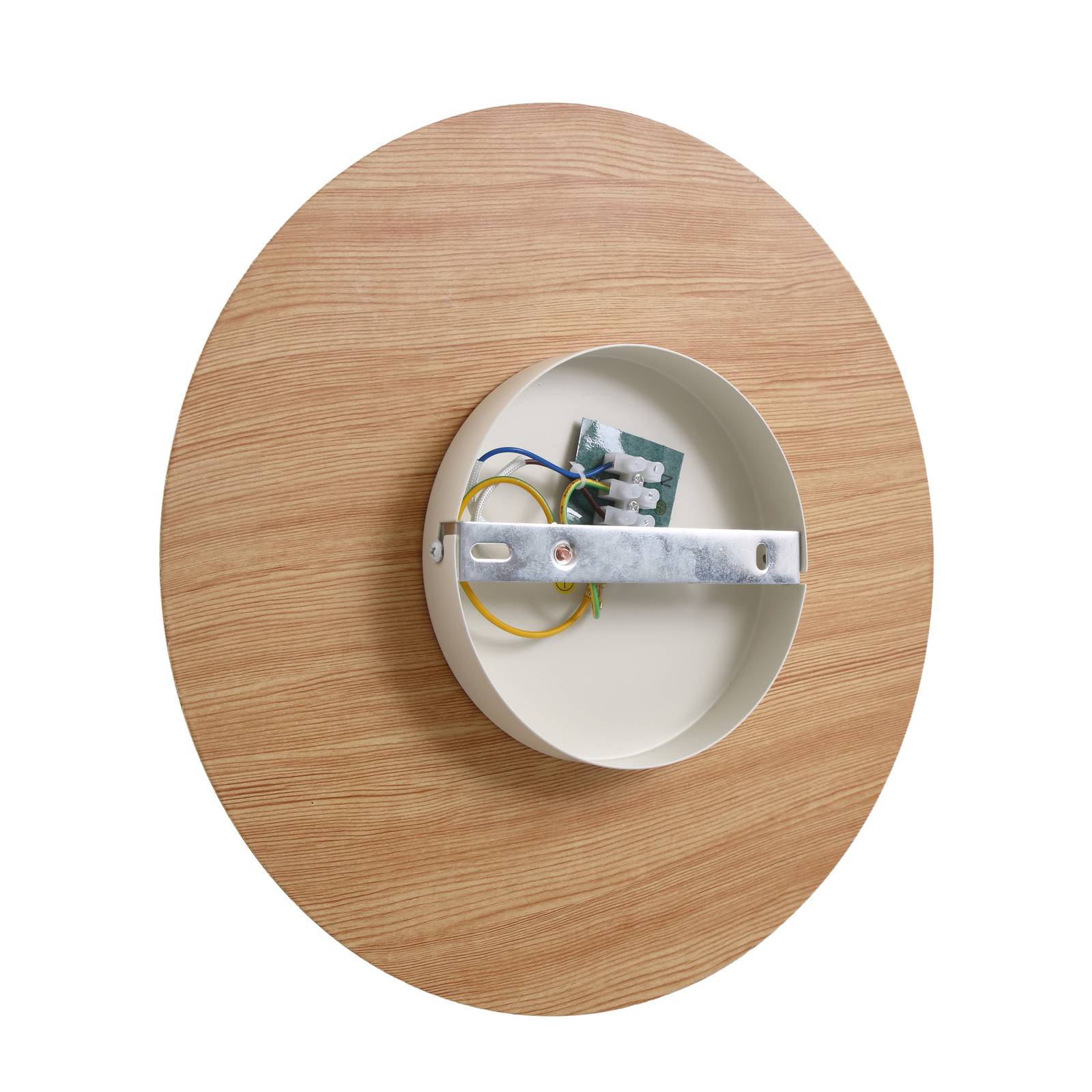 Applique tonda Zain con decoro in legno L'applique Zain colpisce per la sua cornice tonda con un bel decoro in legno che dona un tocco naturale alla zona giorno. Il design è completato da un paralume sferico in vetro bianco che fatto luce senza abbagliare l'ambiente circostante. Zain può essere utilizzata come fonte di luce nel corridoio, nel soggiorno o nella camera da letto.