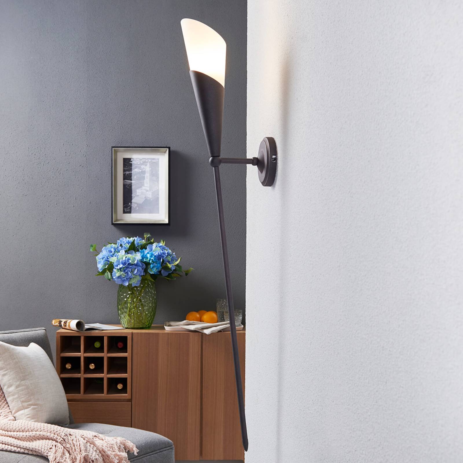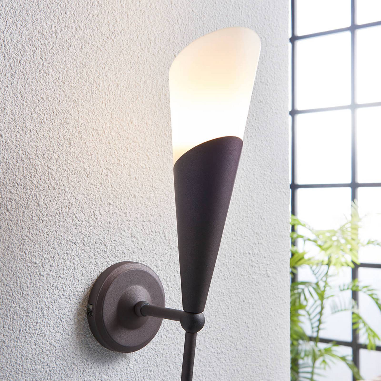 Raffinata applique Estelle a fiaccola, in finitura marrone ossidato Le applique a fiaccola riescono solitamente più raffinate di ogni altro tipo di lampada fissata sulle pareti. Questo ovviamente per la loro forma che fa subito pensare a come si illuminavano corridoi e saloni prima dell'invenzione dell'elettricità. Tutti conoscono l'immagine di luoghi così addobbati. Grazie alla sua costruzione a fiaccola, Estelle diffonde una luce di effetto molto suggestivo. Fra l'altro la finitura ossidata è quella che meglio si accompagna a una forma di questo tipo. La scelta è perfetta per le case di campagna o di stile antico.