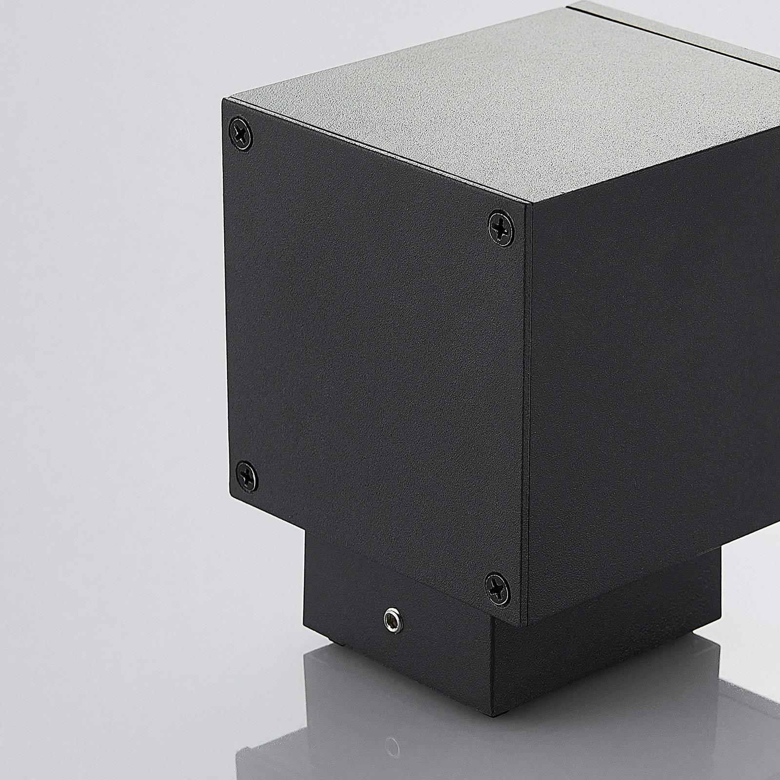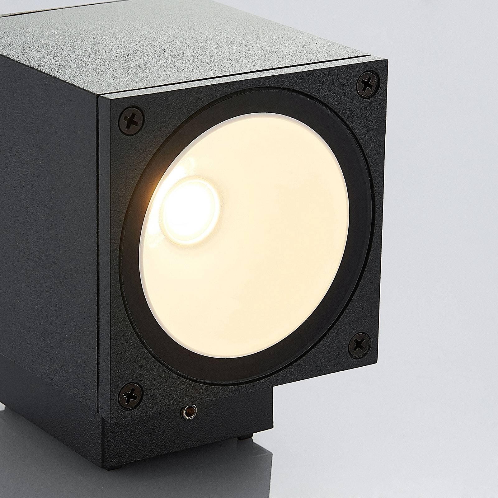 Applique LED da esterni Mekita quadrata in grigio scuro, emissione in basso Mekita ha una forma di tipo cubico che armonizza soprattutto con case e giardini di stile moderno. L'applique LED da esterni proietta la luce esclusivamente verso il basso con un effetto morbido e vivace. I LED incorporati vantano un'ottima efficienza energetica in quanto assorbono poca corrente. La finitura della costruzione è in grigio scuro, un colore neutro e sobrio che si combina bene con molti altri colori.