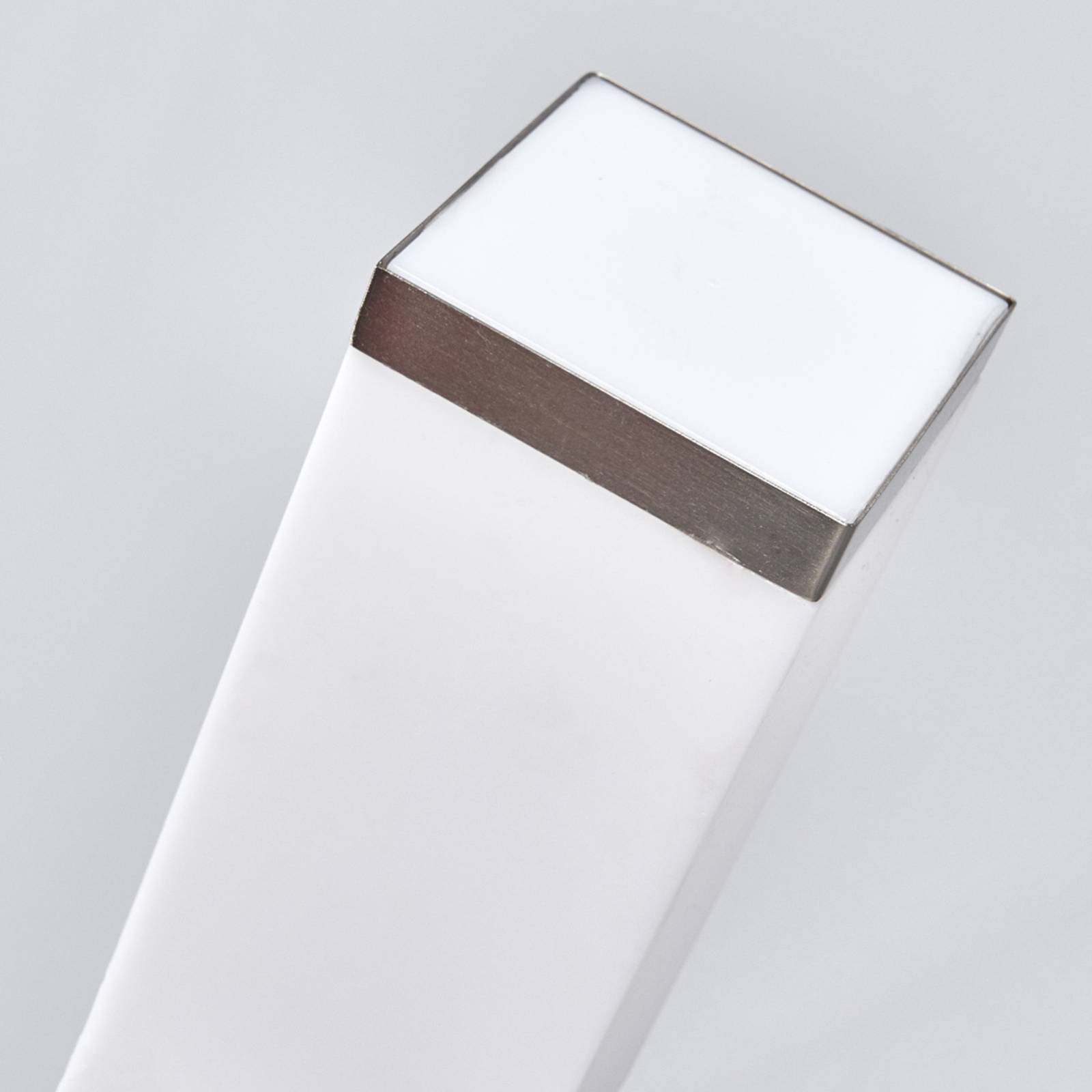 Applique inclinata Lorian in acciaio inox Lorian si accompagna bene alle architetture moderne in virtù della sua forma squadrata e della finitura in acciaio inox. In questo caso il corpo illuminante non è verticale bensì sporge obliquamente dalla parete, un po' come un'antica fiaccola. Il rifrattore di plastica bianca distribuisce la luce con uniformità, senza che si formino fastidiosi abbagliamenti.