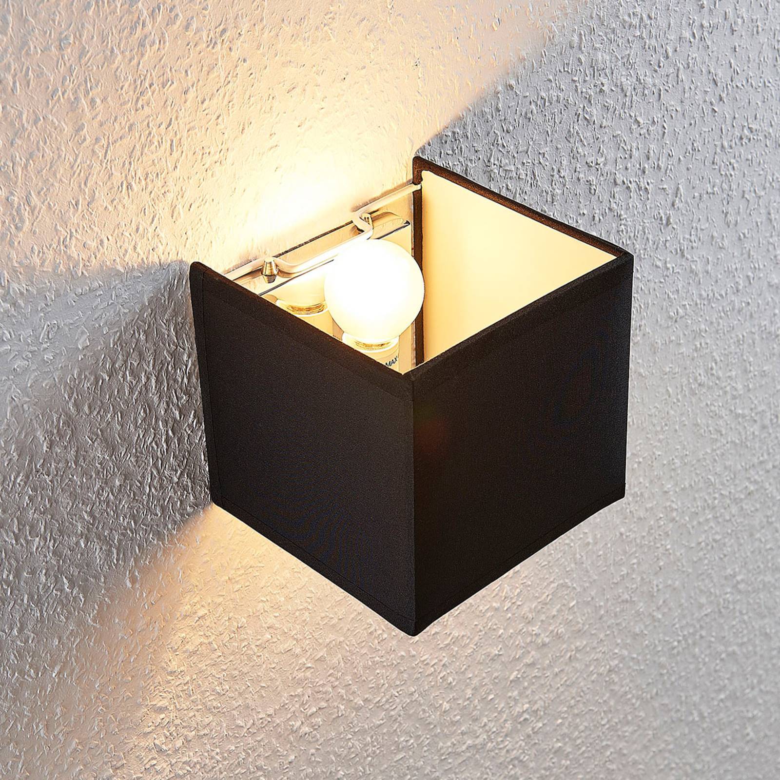 Applique in tessuto nero Adea a forma di cubo, con interruttore integrato Adea è formata quasi esclusivamente da un paralume in tessuto nero a forma di cubo, aperto in alto e in basso, per una luce bidirezionale. Questa lampada illumina l'ambiente con una luce smorzata, molto calda e avvolgente. Per questo, Adea è l'applique perfetta per una luce d'accento o integrativa. L'interruttore montato sul supporto a parete consente di accendere e spegnere la lampada dal letto o dal divano.