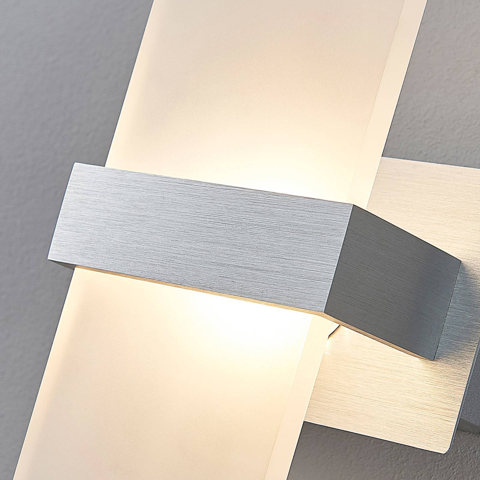 Elegante applique a LED Yorick con paralume in plastica satinata e staffa di metallo con effetto alluminio spazzolato L'applique a LED Yorick dispone di un pratico interruttore integrato. La superficie satinata del corpo in plastica da un lato rende la luce morbida e omogenea, dall'altro conferisce alla lampada un carattere moderno, che la rende adatta a un ambiente arredato nello stesso stile. La tecnologia LED all'avanguardia garantisce una luce intensa a basso consumo.
