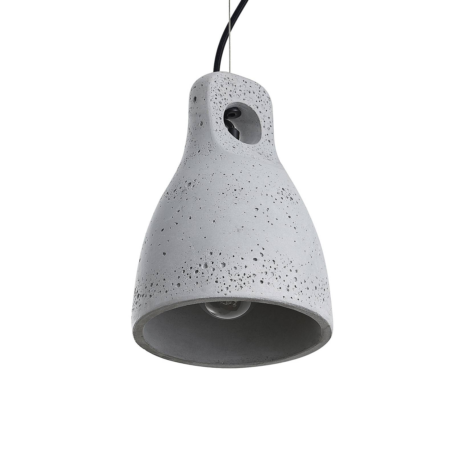 Lampada a sospensione a tre luci Esmila con paralumi in cemento La lampada a sospensione Esmila beam è dotata di tre paralumi in cemento, che pendono da un lungo elemento in legno di eucalipto su cavi d'acciaio. Come il baldacchino di metallo, i cavi dell'apparecchio sono in nero e ricoperti di tessuto. Esmila è una lampada a sospensione che è particolarmente adatta per illuminare un tavolo, sia in cucina che in soggiorno, e ispira con la sua speciale combinazione di materiali. Le lampadine con base E27 che devono essere utilizzate irradiano la loro luce verso il basso esclusivamente attraverso le aperture del paralume.