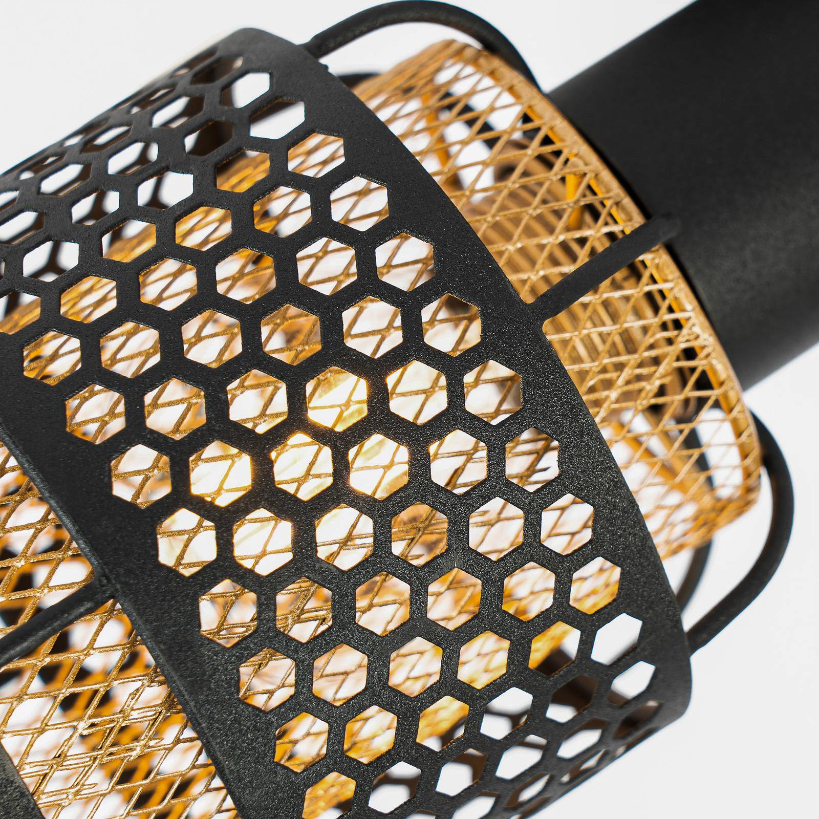 la luce generata crea un emozionante gioco di luci attraverso la perforazione. Il faretto da soffitto Eudoria può essere dotato di sorgenti luminose appropriate e consente quindi di scegliere liberamente il colore e l'intensità della luce. Eudoria è ideale per l'illuminazione di un corridoio o di un soggiorno e crea accenti suggestivi all'interno dell'arredamento con la sua combinazione cromatica di nero e oro.