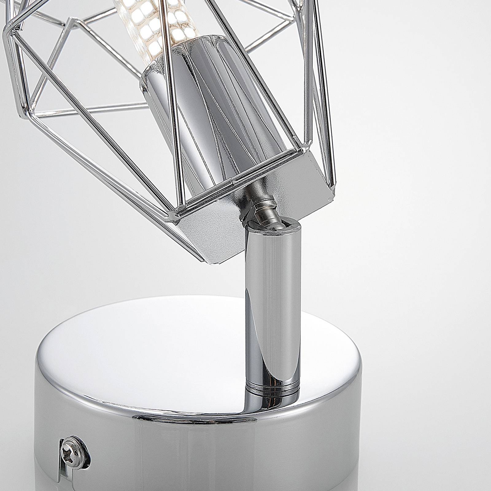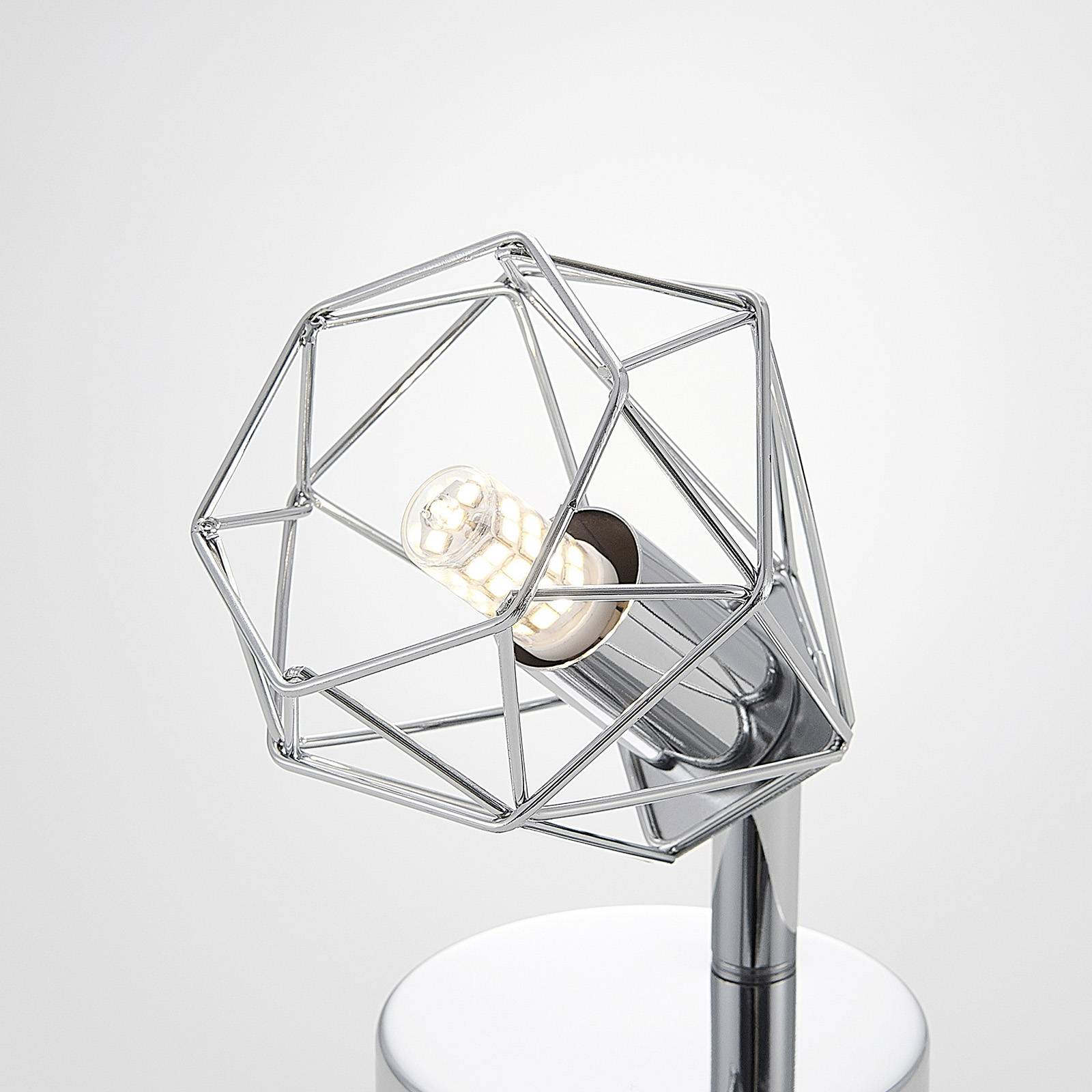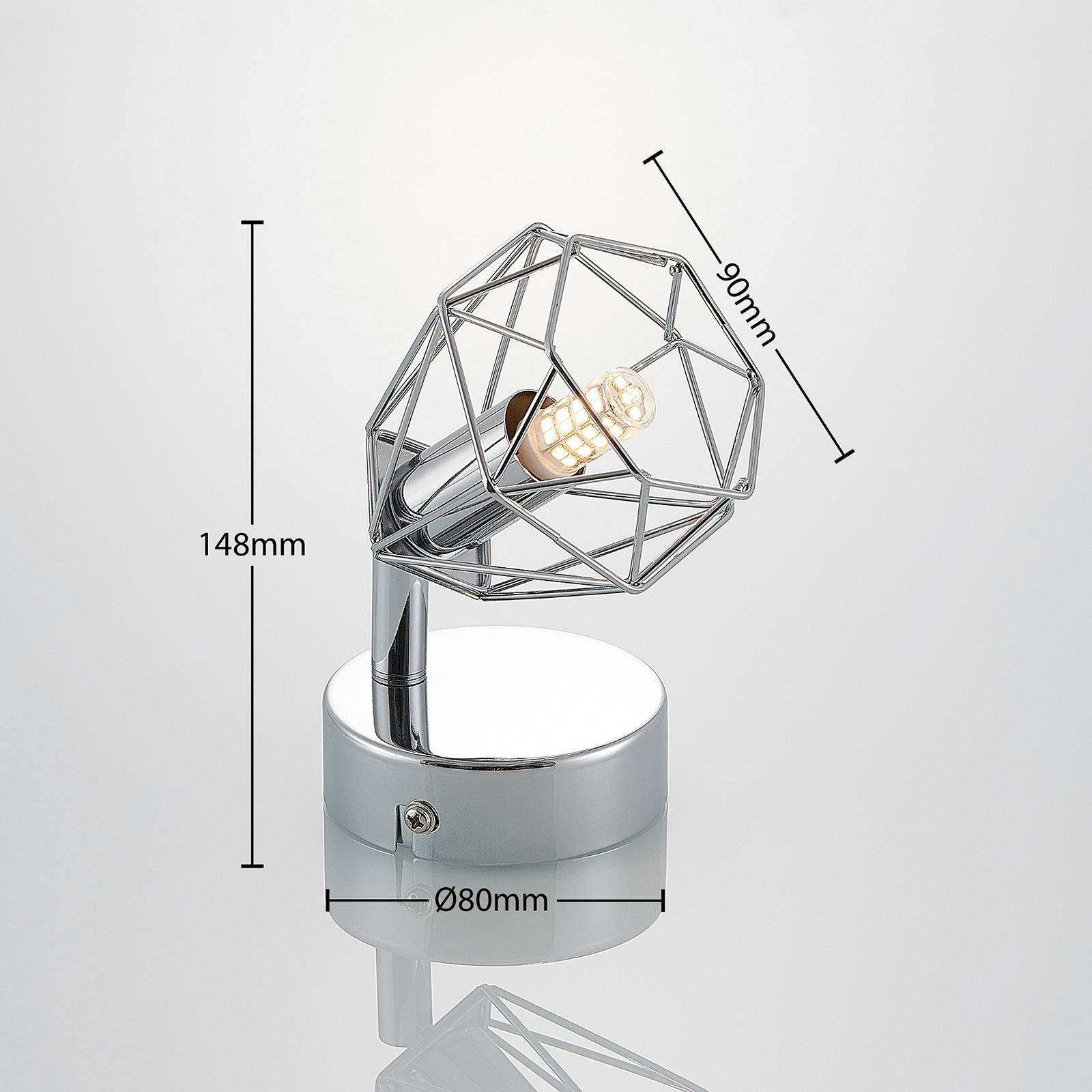 Lampada da parete moderna Giada con paralume a gabbia La piccola e moderna lampada da parete Giada ha un paralume a forma di gabbia. Il supporto a parete e il paralume sono realizzati in cromo lucido. La lampada da parete può essere dotata di lampade appropriate. Come lampada da parete, Giada è perfetta per i concetti di arredamento moderni e giovani e si adatta senza problemi a diversi spazi abitativi, sia come piccola luce aggiuntiva in soggiorno, che in corridoio o in camera da letto.