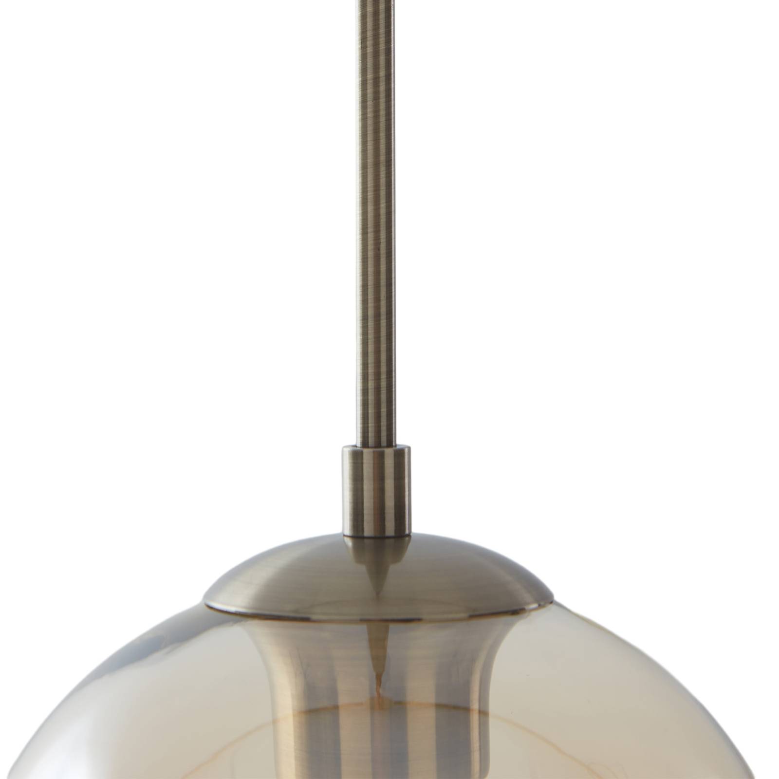 Bella lampada a sospensione Jurian a forma di sfera, vetro ambra Jurian è una lampada a sospensione monolampada con paralume sferico in vetro colorato d'ambra, che non solo ha un aspetto elegante ma diffonde anche una luce calda. La sorgente luminosa all'interno del paralume di vetro è chiaramente visibile in ogni momento e dovrebbe quindi essere piuttosto decorativa per creare un'immagine complessiva coerente. Il vetro chiaro con sfumatura è completato da dettagli in acciaio in ottone vecchio, in modo che i diversi elementi si integrino bene tra loro. Per un effetto luminoso più efficace, è possibile montare diversi apparecchi in un'ampia fila per diffondere bene la luce, ad esempio, su un bancone.