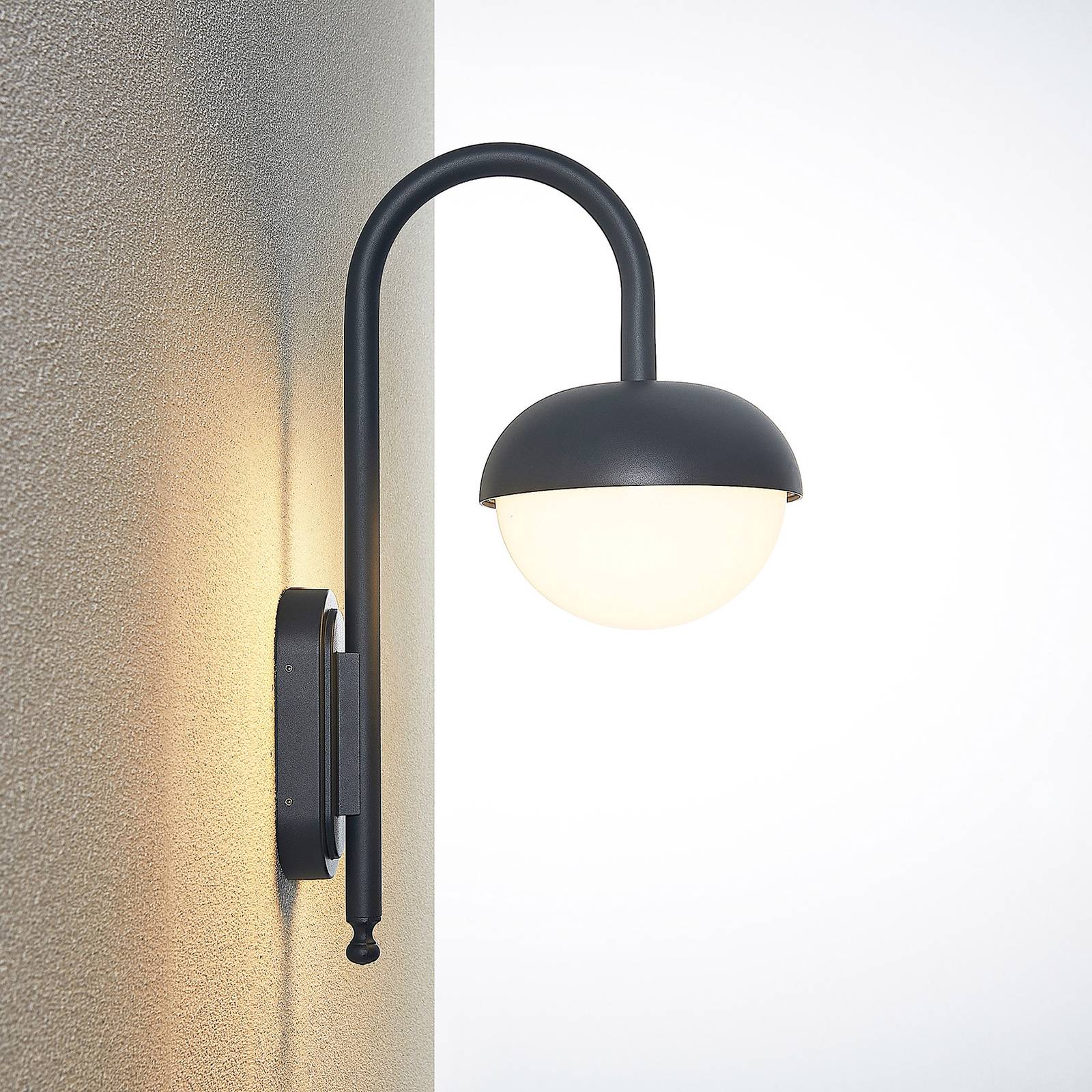 Lampada da parete per esterni a LED Kallie, realizzata in alluminio nel classico look a lanterna Kallie è una lampada da parete per esterni a LED di grande effetto che crea accenti accattivanti sulle pareti di casa. Il corpo è in alluminio grigio scuro e la forma ricorda quella di una classica lanterna. Il paralume ha un diffusore in plastica che circonda i LED installati in modo permanente. Questi LED generano un'illuminazione bianca calda, perfetta per un vialetto o una terrazza. Grazie alla classe di protezione IP54, Kallie è protetto da polvere e spruzzi d'acqua e ha un carattere robusto. Per un'impressione complessiva armoniosa, la lampada da parete per esterni a LED può essere combinata con altre lampade della sua serie.