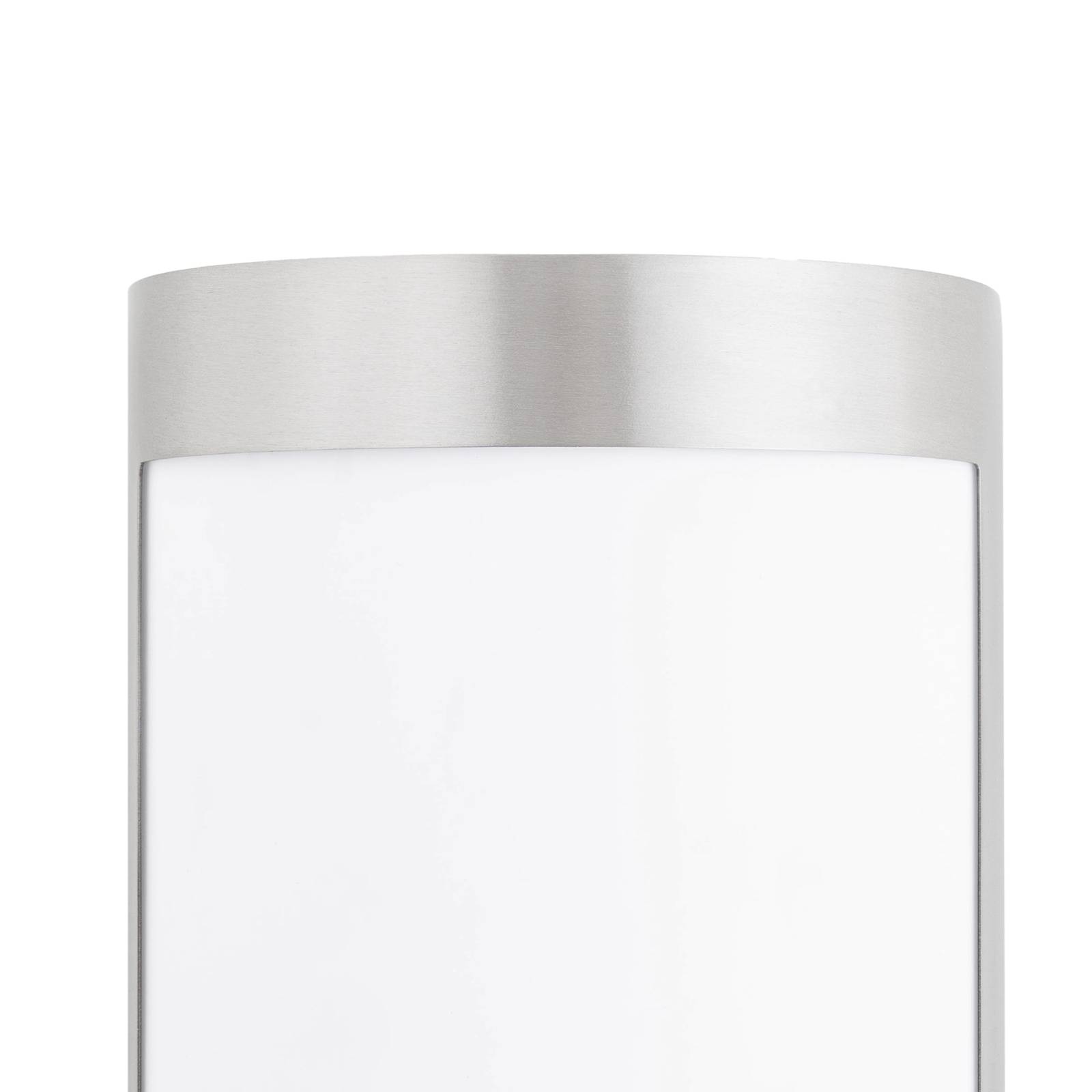 Sobria applique da esterni Kinga con cornice arrotondata di acciaio inox Kinga si intona bene ad un contesto moderno ma anche ad uno stile classico in virtù del suo design molto sobrio. Il supporto, essenzialmente una cornice, è costruito in acciaio inox. Trattiene un diffusore di plastica bianca che diffonde la luce con uniformità.