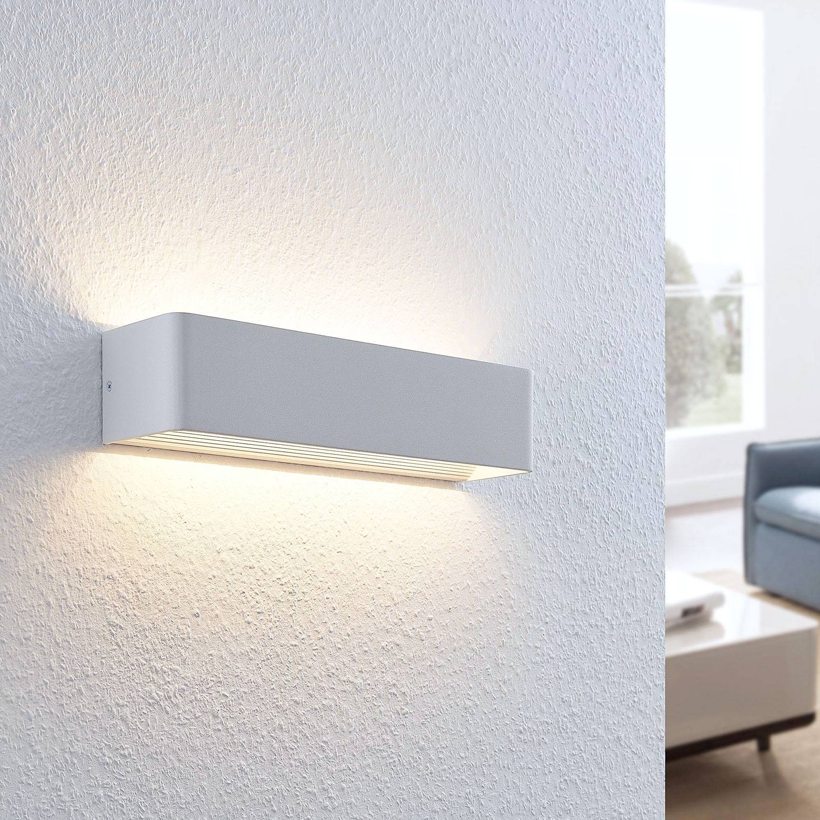 Lampada LED da parete Lonisa con luce morbida diffusa verso l'alto e verso il basso Lonisa è formata da un corpo in metallo dai bordi leggermente arrotondati, completamente bianco. Sul retro dello schermo in metallo sono installati i LED, che illuminano un riflettore angolare di metallo. Questo sistema diffonde nell'ambiente una luce morbida e calda, completamente priva di effetto abbagliante. I LED di questa lampada producono una luce intensa a basso consumo, caratteristica molto apprezzata dai consumatori moderni.