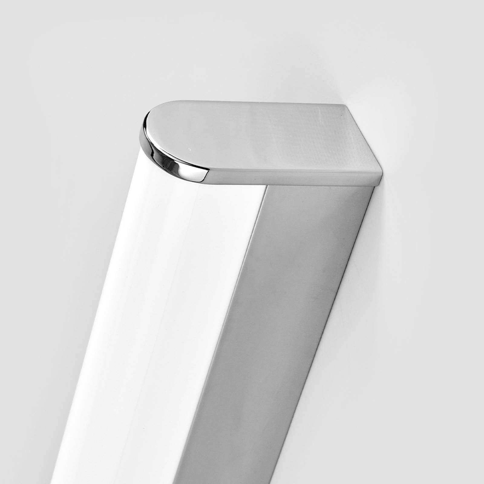 Lampada per specchio a LED Philippa allungata con supporto cromo Grazie alla sua forma allungata, Philippa è ideale come lampada per specchio, tanto più che con indice di protezione IP44 è adeguatamente resistente alla penetrazione di acqua, eventualità che in bagno prima o poi può presentarsi. Il diffusore bianco opalino è realizzato in robusto acrilico, dimostrandosi a prova di danno e diffondendo una luce soffusa. I LED si accendono di colore bianco caldo.