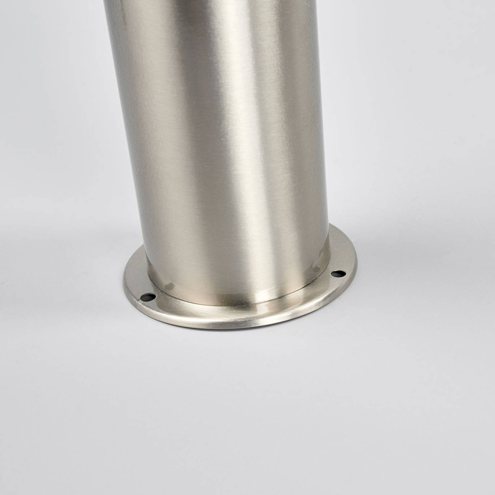 Estetico lampione a LED Fabrizio di moderna forma cilindrica in acciaio inossidabile Questa lampada si intona bene soprattutto alle architetture moderne. Presenta una costruzione cilindrica di acciaio inossidabile, chiusa da un diffusore satinato che copre le sorgenti LED. Il diffusore è formato da due coni satinati che nell'insieme somigliano a una clessidra, a loro volta coperti da un tubo acrilico trasparente.