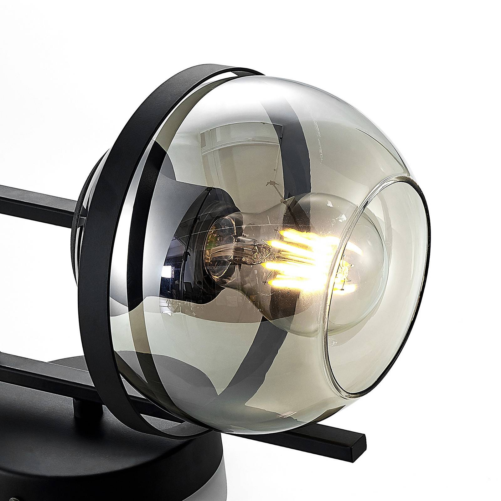 Applique con paralume sferico in vetro fumè trasparente Marinka incarna un design elegante e leggermente rustico ed è un'applique che fornisce affidabilmente luce all'interno. La struttura con bordo metallico anulare, che contiene il paralume della lampada, è in metallo e ha una superficie nero opaco. Il vetro, d'altra parte, è trasparente e ha una sfumature fumè. A scelta possono essere usate lampadine E27, ma, grazie alla buone visibilità che garantiscono, anche lampadine LED efficienti o con tecnologia a filamento, e che somigliano molto alla buona, vecchia lampadina a incandescenza.
