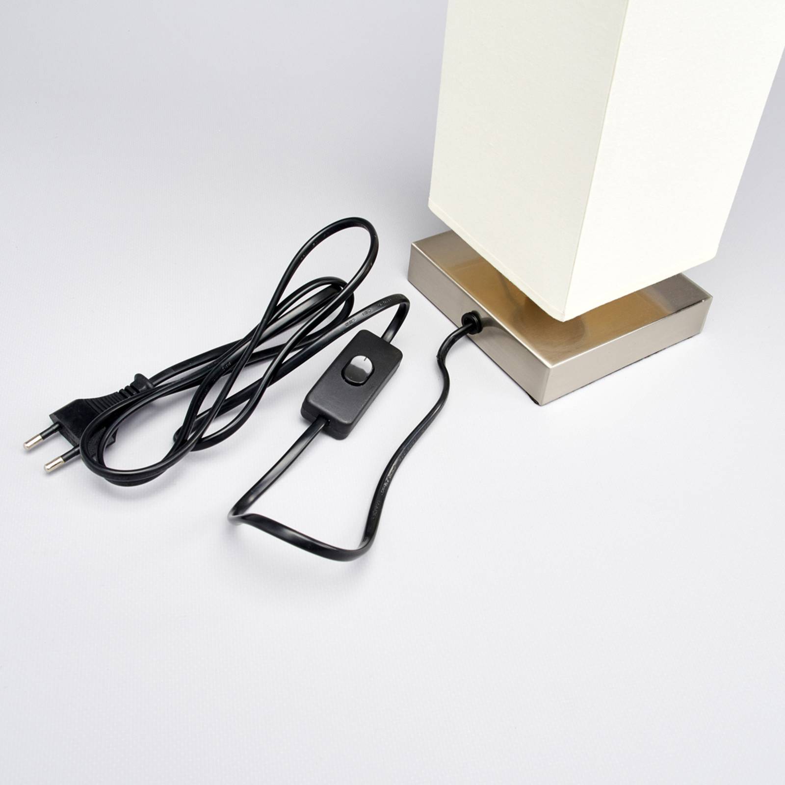 Lampada angolare da comodino Martje con paralume in tessuto bianco crema per lampadina E14 Accendendo questa lampada da comodino si accende una luce bellissima, che naturalmente è ottima anche come illuminazione supplementare in soggiorno o in corridoio. Può essere posizionato su un tavolino, una cassettiera o un davanzale e diventa un punto focale piacevolmente illuminato. Può essere dotato di lampadine E14