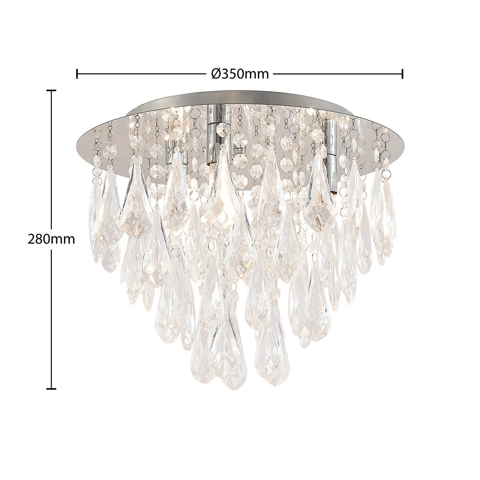 Elegante plafoniera Mavinus con baldacchino sporgente in cromo La lampada da soffitto Mavinus affascina con i suoi elementi sospesi in acrilico, che provvedono alla rifrazione della luce irradiata e creano così accenti di luce molto belli nella stanza. Si possono utilizzare tre lampadine G9, in cui i punti di combustione sono ben nascosti tra gli elementi acrilici scintillanti. Anche quando è spenta, la luce dà un'impressione desiderabile e conferisce al soggiorno un tocco di lusso. Pertanto, questa bella lampada può essere integrata non solo nel soggiorno e nella sala da pranzo di casa, ma anche nel settore alberghiero e della ristorazione.