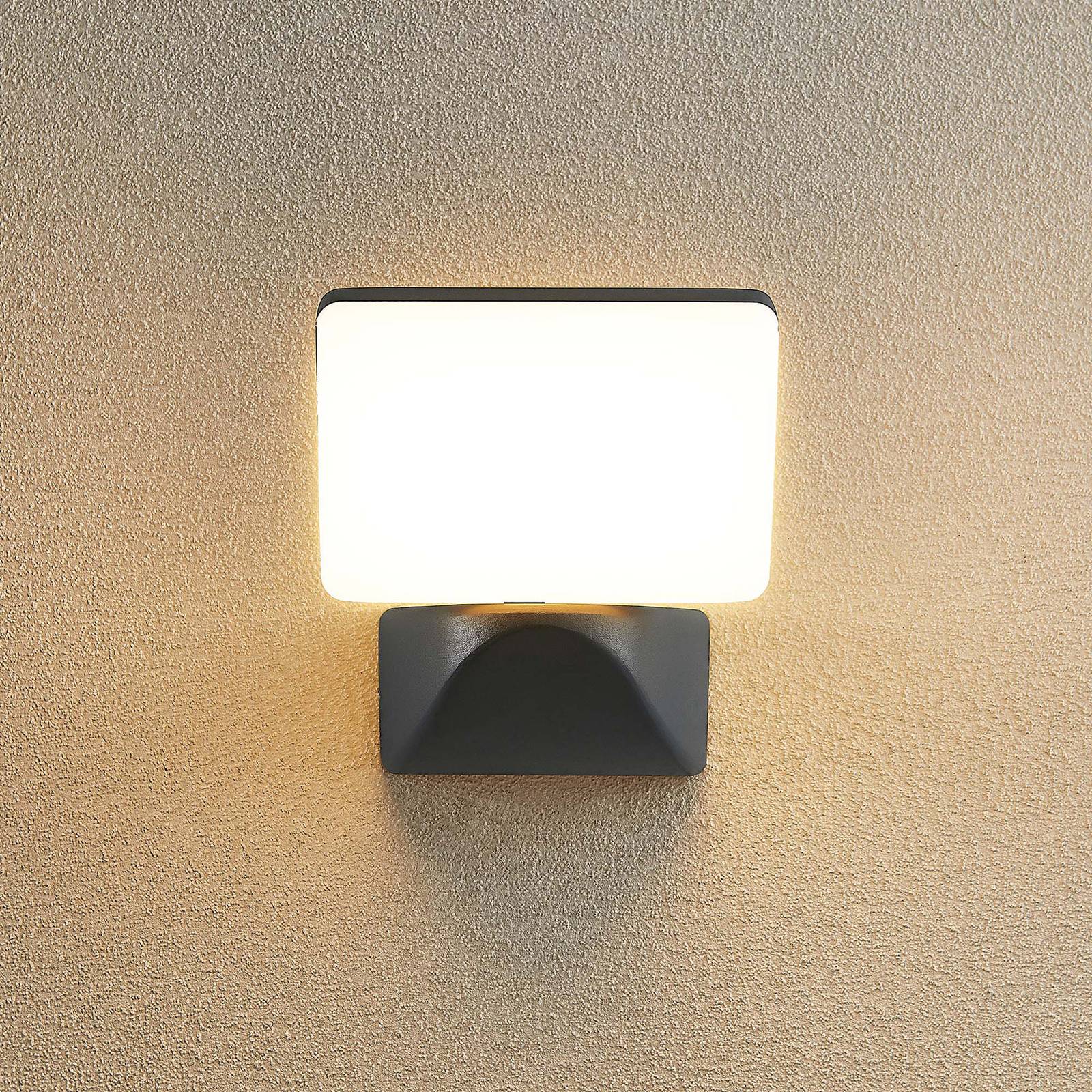 Semplice faretto LED da parete per esterni Melamika in alluminio nero Melamika è un moderno faretto per esterni che colpisce per il suo design semplice. È realizzato in alluminio con superficie grigio scuro. È dotato di un diffusore in plastica bianca che circonda i LED installati in modo permanente che generano una luce bianca calda. Questa luce piacevole e non abbagliante è ideale per un vialetto o un patio. Con un grado di protezione IP54, il faretto da parete per esterni Melamika LED è protetto da polvere e spruzzi d'acqua, conferendogli un carattere robusto. All'occorrenza, può essere abbinato ad altre luci della serie per creare un'impressione complessiva armoniosa.