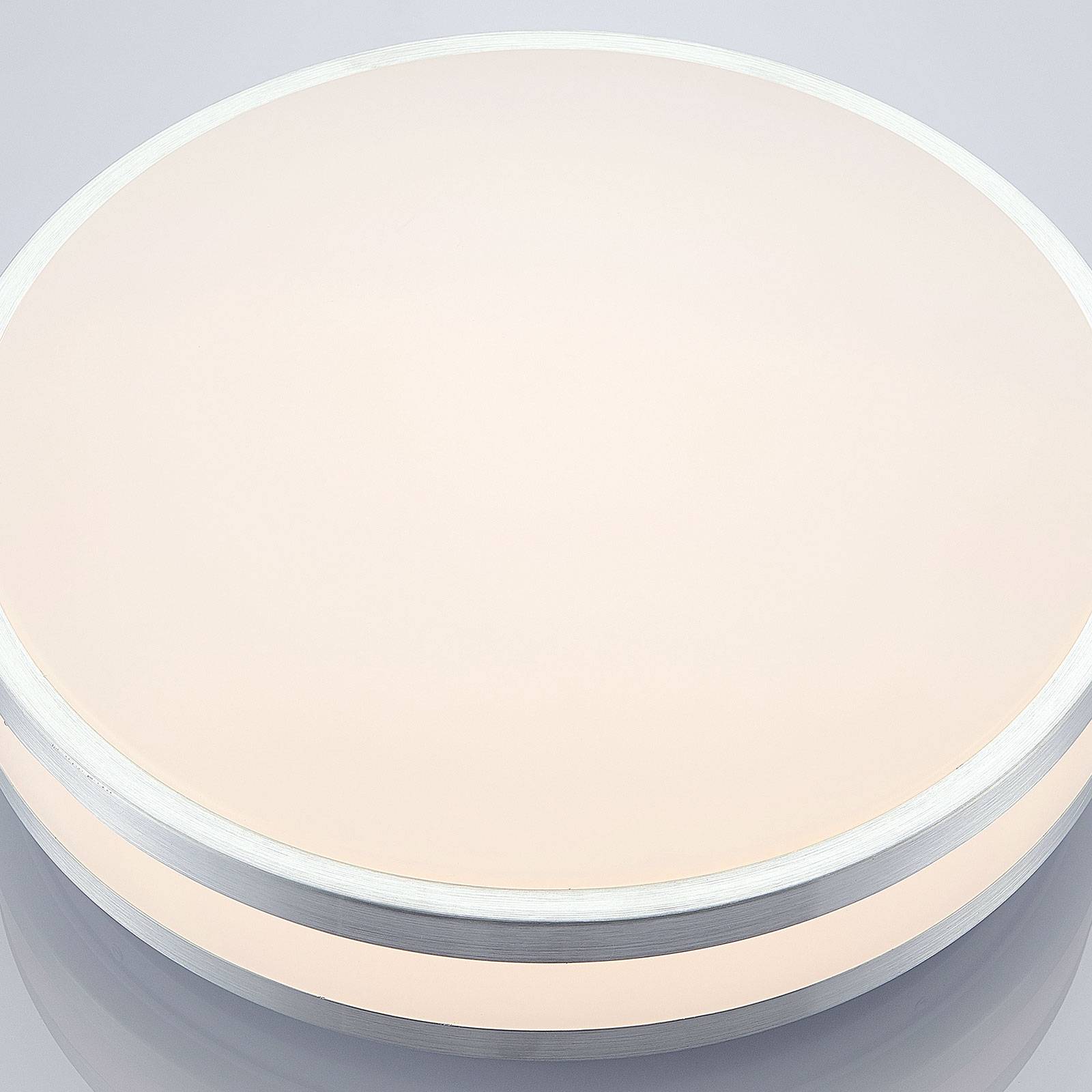 Plafoniera LED Nelia di forma rotonda con cornice di alluminio Nelia è una plafoniera versatile e di aspetto neutro, adatta a molti ambienti di una casa moderna. Il paralume rotondo è realizzato principalmente in plastica bianca e incorniciato in anelli di alluminio, quelli che conferiscono alla lampada un tocco individuale. I LED incorporati emettono una luce intensa con grande efficienza energetica. Il rifrattore bianco diffonde l'illuminazione con uniformità e senza abbagliare.