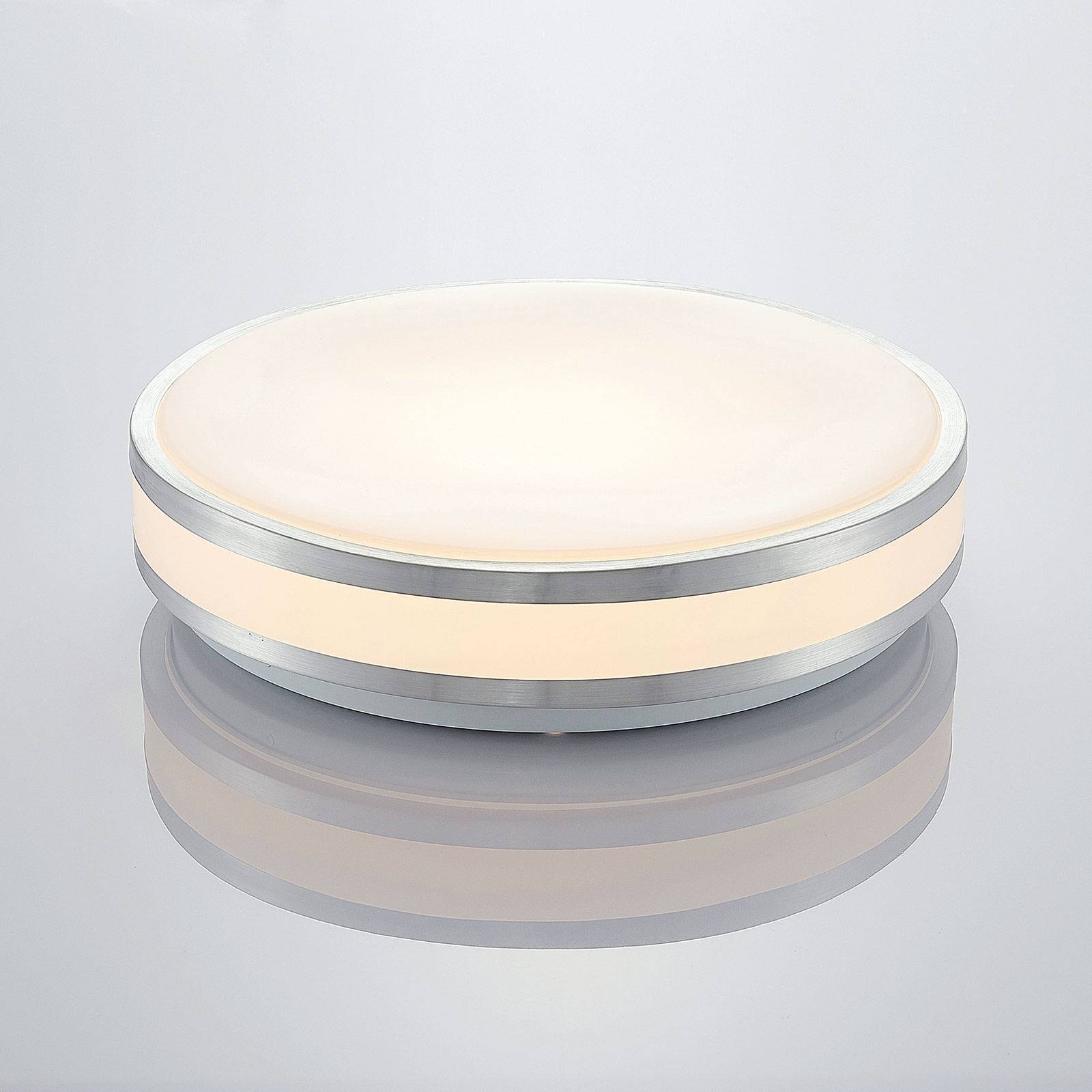 Plafoniera LED Nelia di forma rotonda con cornice di alluminio Nelia è una plafoniera versatile e di aspetto neutro, adatta a molti ambienti di una casa moderna. Il paralume rotondo è realizzato principalmente in plastica bianca e incorniciato in anelli di alluminio, quelli che conferiscono alla lampada un tocco individuale. I LED incorporati emettono una luce intensa con grande efficienza energetica. Il rifrattore bianco diffonde l'illuminazione con uniformità e senza abbagliare.