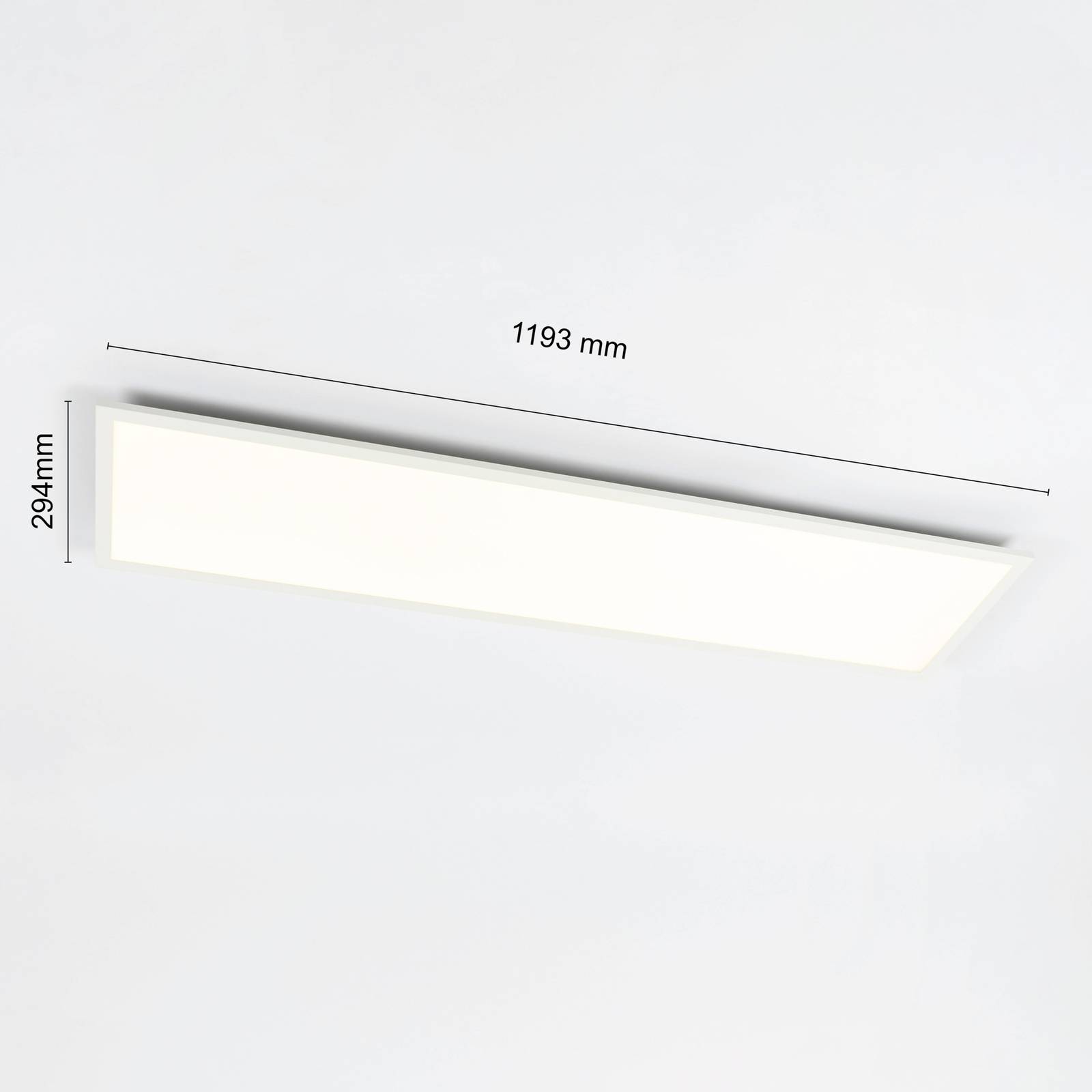 Luay - moderno pannello a LED con Tunable White, luce notturna e telecomando Luce sempre alla giusta temperatura di colore, questo è ciò che offre il moderno pannello LED Luay. Che si tratti di bianco caldo (3.000 K), bianco universale (4.000 K) o luce diurna (6.000 K), queste tre modalità di luce possono essere richiamate comodamente in qualsiasi momento. Ciò si ottiene commutando più volte l'interruttore a muro o utilizzando il telecomando in dotazione. Il pannello a LED può essere oscurato solo con il telecomando, che permette anche di richiamare una funzione di luce notturna e contiene una funzione di memoria. Il pannello a LED allungato Luay può essere utilizzato in molti modi grazie al suo aspetto senza tempo e alla sua funzionalità, sia in cucina, in soggiorno o anche nello studio.