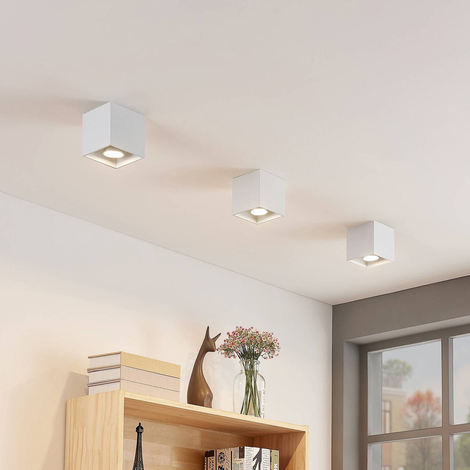 Downlight Parvin in alluminio di compatta forma cubica bianca Parvin è una lampada realizzata in alluminio di qualità verniciato in colore bianco. La forma è quella di un cubo, con i lati di lunghezza identica. La finitura in colore bianco e la forma squadrata sono decisamente neutre e si intonano a quasi tutti i tipi di arredamenti. Vi si avvita una lampadina ad attacco GU10, preferibilmente in efficiente tecnica LED. Nella scelta si presti attenzione all'angolo di emissione, che può essere di tipo spot oppure a fascio allargato. Anche in un ambiente commerciale il downlight Parvin si rivela un corpo illuminante pratico e sobrio.