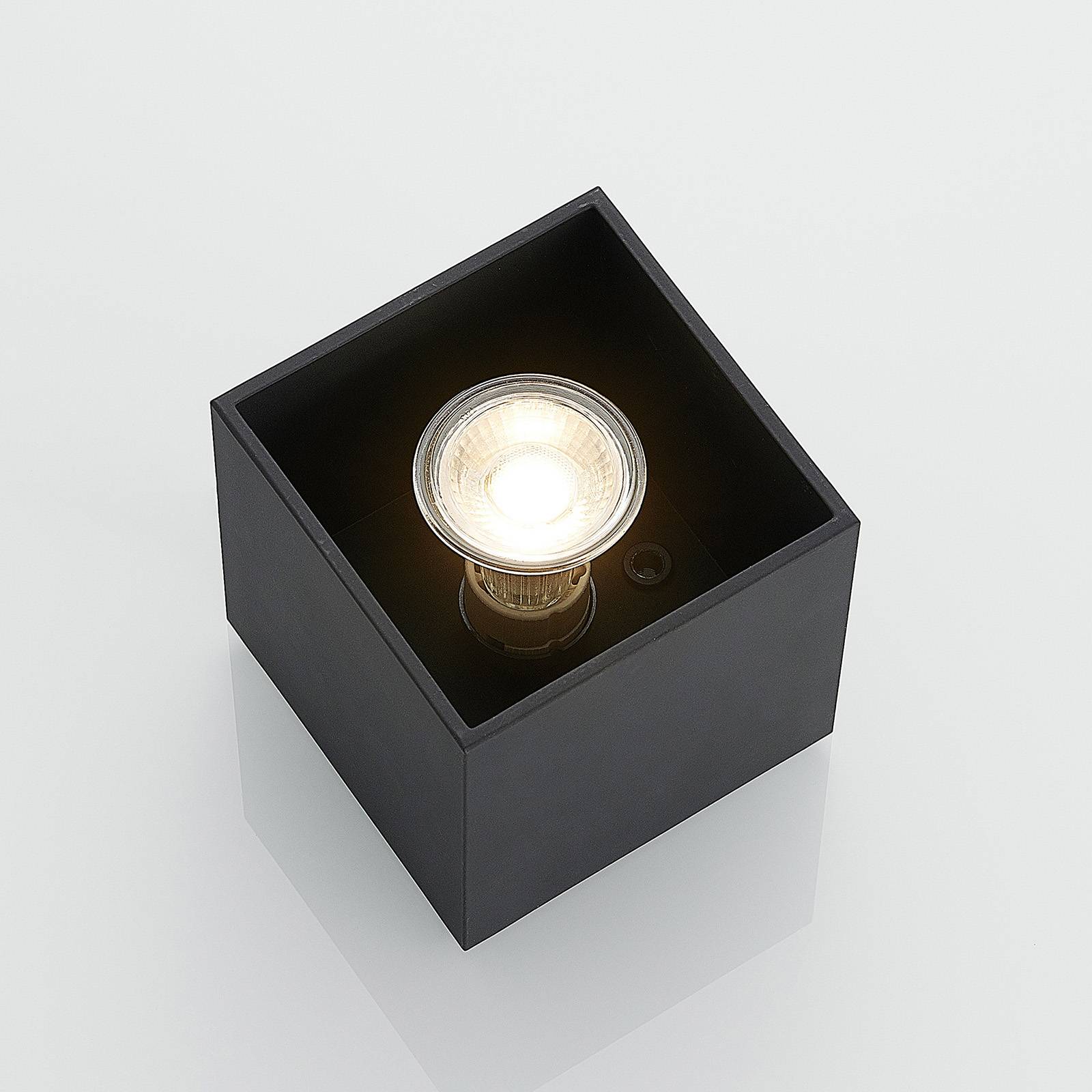 Downlight Parvin di compatta forma cubica nera Parvin è un corpo illuminante di aspetto semplice: consiste essenzialmente in un compatto cubo di alluminio che concentra la luce verso il basso. Vi si avvita una lampadina ad attacco GU10, preferibilmente in efficiente tecnica LED. Nella scelta si presti attenzione all'angolo di emissione, che può essere di tipo spot oppure a fascio allargato. Parvin trova posto nelle case private ma anche in ambienti commerciali. Infatti la finitura in neutro colore nero è sganciata da ogni stile e fa bella figura ovunque.