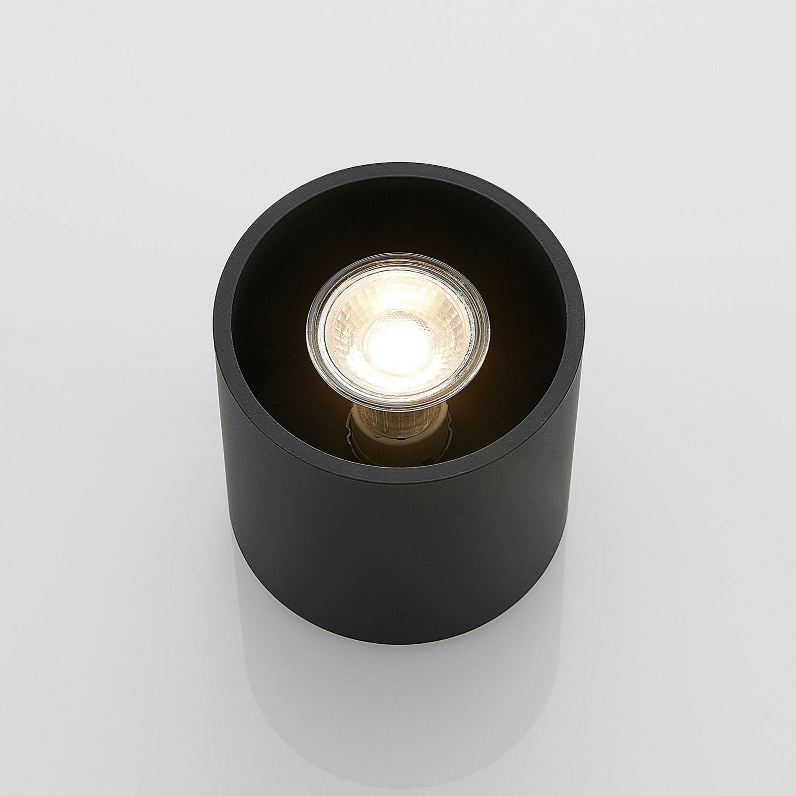 Downlight Parvin di alluminio, forma rotonda nera Questo downlight costruito in alluminio ha una forma cilindrica che si presta a molte destinazioni. Vi si avvita una lampadina ad attacco GU10, preferibilmente in efficiente tecnica LED. Parvin trova posto nelle case private ma anche in ambienti commerciali. L'emissione di luce è a fascio stretto o allargato, a seconda del tipo di lampadina che si sceglie. La finitura in colore nero sta sempre bene e si presenta con stile.
