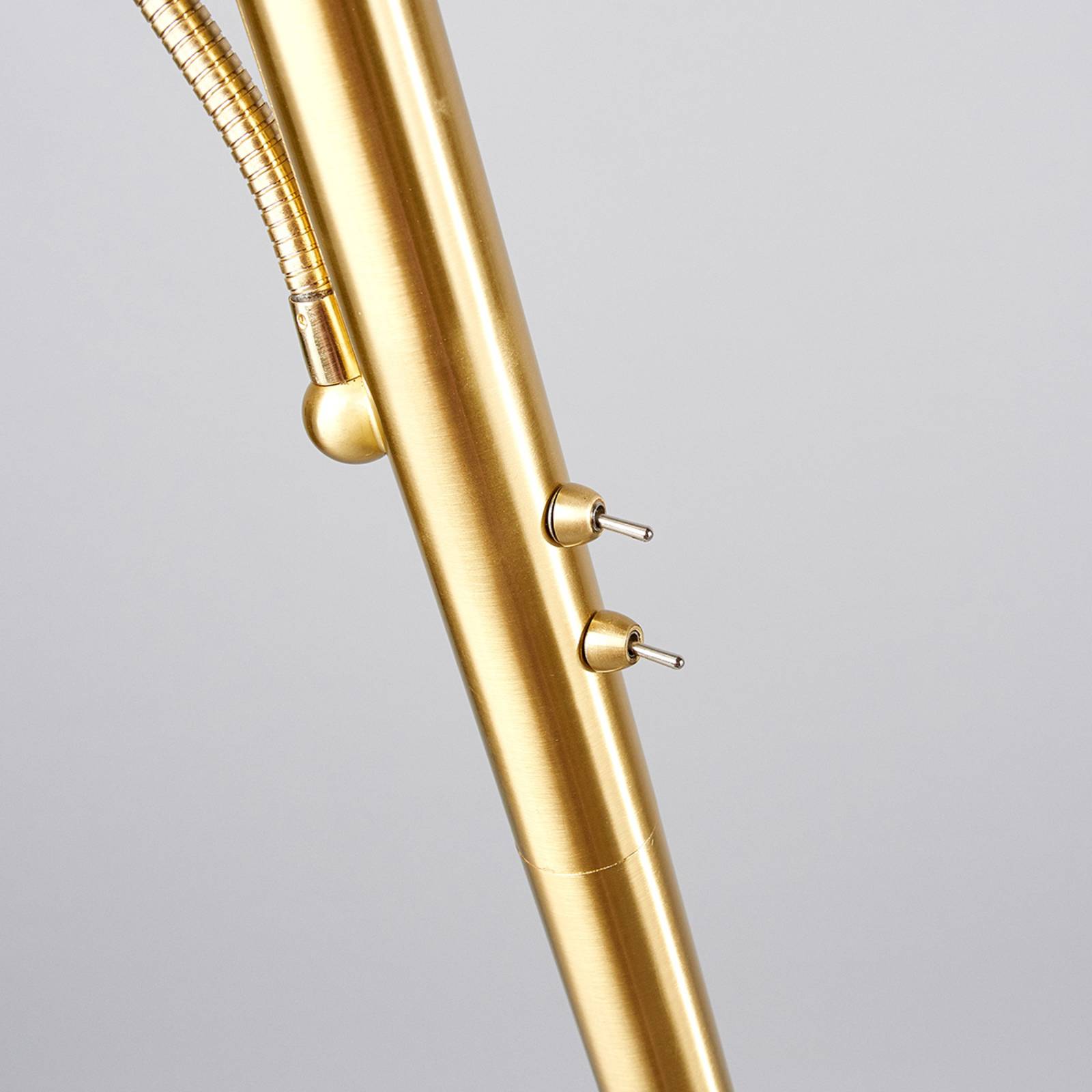 Proiettore da soffitto Elaina color ottone con lampada da letturaLe due sorgenti luminose di questo proiettore da soffitto funzionano con lampade LED sostituibili. Il proiettore ha un attacco E27, la lampada da lettura un attacco E14. Il proiettore da soffitto crea una luce molto accogliente, il paralume orientato verso l'alto è in vetro bianco e garantisce una distribuzione uniforme della luce. La lampada da lettura si trova sul telaio e può essere regolata, se necessario, per garantire condizioni di illuminazione ottimali. Per entrambe le sorgenti luminose è presente un interruttore separato sulla struttura, in modo da poterle azionare separatamente.