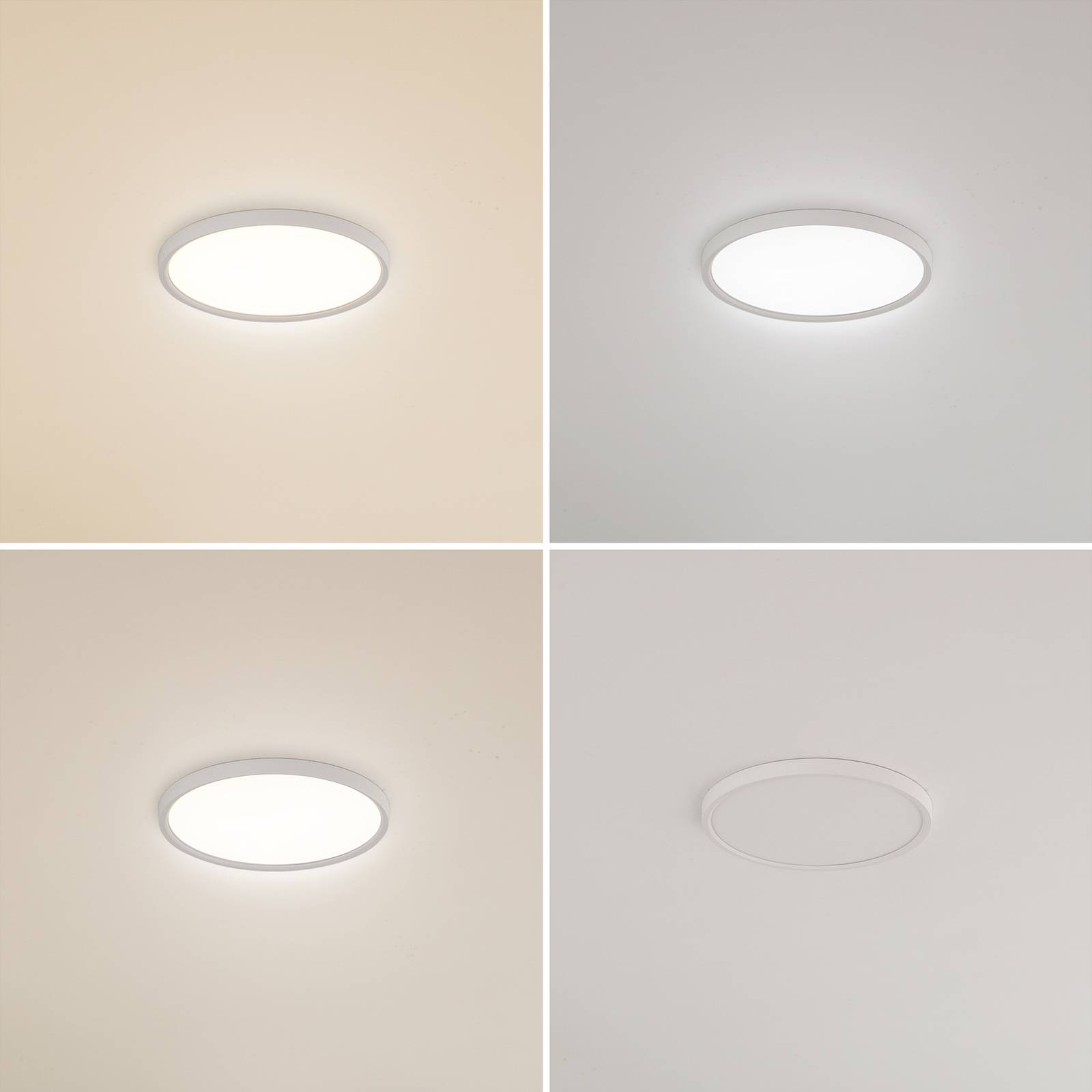 Plafoniera rotonda a LED Diki con tre diversi colori di luce bianca La plafoniera rotonda a LED Diki è un prodotto versatile per tutti gli ambienti della casa. Poco appariscente nel design, ma di grande effetto. I tre colori di luce bianco caldo (3.000 K), bianco universale (4.000 K) e luce diurna (6.000 K) possono essere impostati tramite l'interruttore della luce. Questa funzionalità li rende così versatili: luce più calda per le aree accoglienti della casa, luce più fredda per le aree di lavoro, sia nello studio che nel laboratorio in cantina.