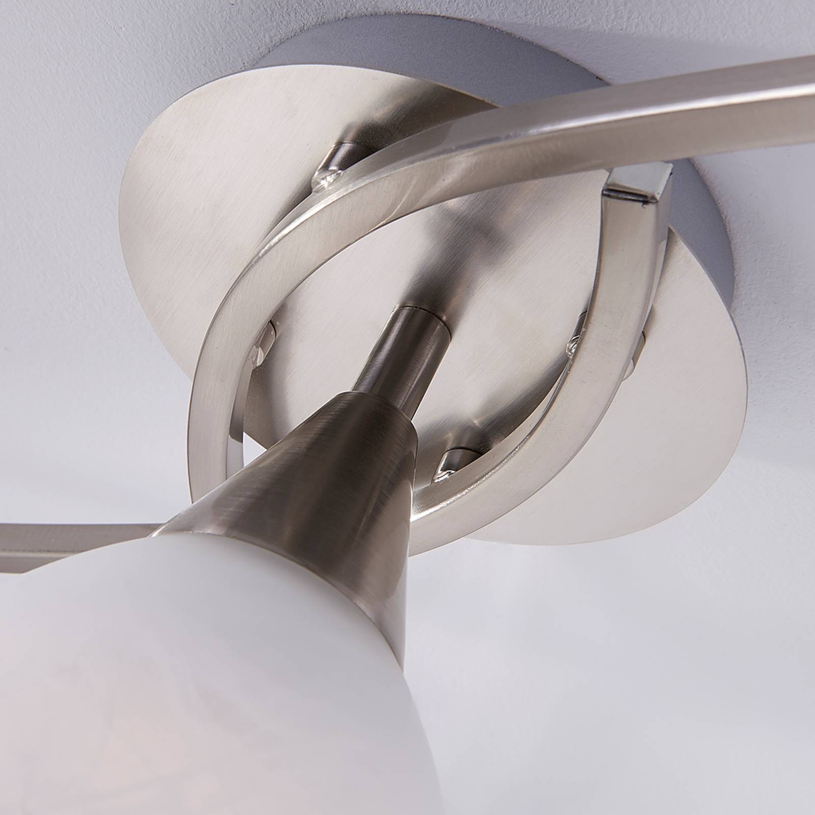 Bellissima lampada da soffitto di forma allungata Della ha una struttura in metallo con finitura nichel opaco. I bicchieri o paralumi hanno una forma accattivante e sono caratterizzati da un bellissimo aspetto alabastrino, che può essere utilizzato per creare un effetto di illuminazione accogliente. Inoltre, la forma allungata e le cinque sorgenti luminose possono garantire una buona illuminazione dell'ambiente mantenendo il consumo energetico a un livello basso