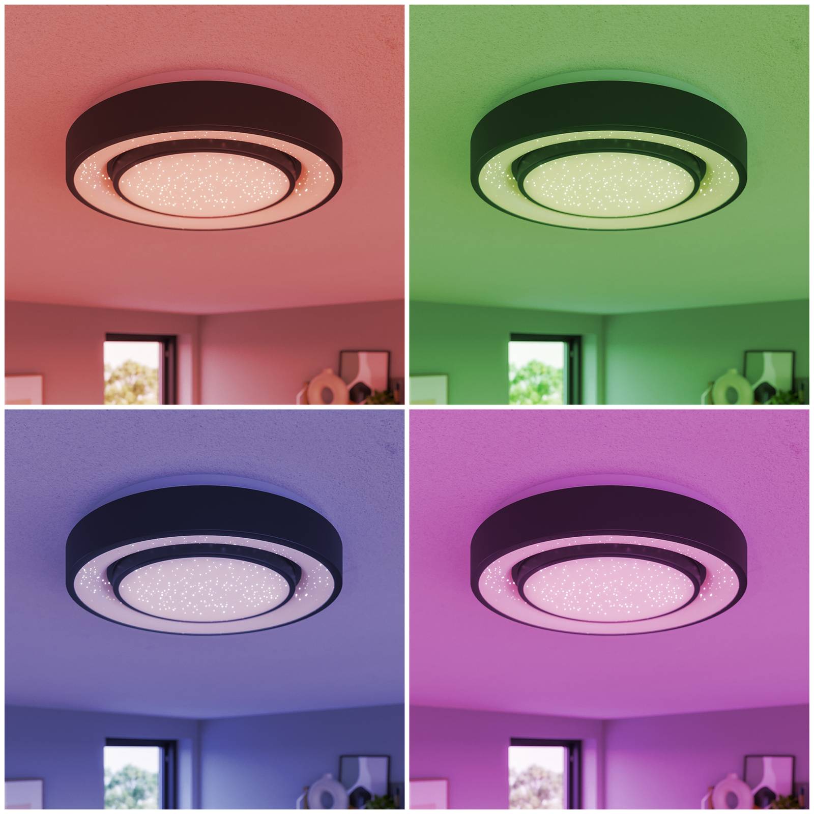 La plafoniera Gamino LED convince per le sue caratteristiche tecniche, controllabili tramite app La plafoniera Gamino LED convince per il suo design moderno e le sue sofisticate caratteristiche tecniche. La particolarità di questo apparecchio è che può essere dimmerato e impostato su diversi colori di luce a seconda delle esigenze. Il design elegante e rotondo si adatta perfettamente a diversi stili di interni senza essere invadente. Gamino è un vero e proprio HighLight sul soffitto del soggiorno. Dati tecnici - Il colore della luce può essere modificato da bianco caldo (3.000 K) a luce diurna (6.500 K) - Gioco di colori RGBW - Dimmerabile - Controllabile tramite l'app gratuita Tuya (disponibile per iOS e Android)