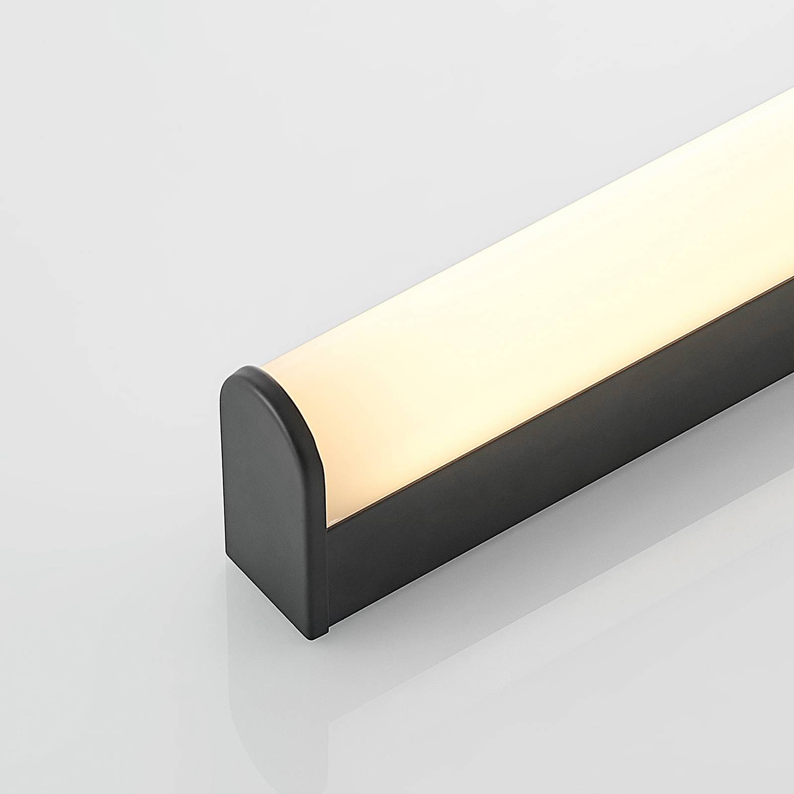 Applique da bagno a LED Ulisan in design nero L'apparecchio da parete a LED per il bagno Ulisan colpisce per il suo design piatto e lineare. Il suo alloggiamento è fatto di metallo robusto e coperto da una finitura nera. La copertura del paralume è in acrilico e lascia che la calda luce bianca si irradi delicatamente nella stanza. I LED installati in modo permanente sono luminosi e allo stesso tempo economici nel consumo di energia. Grazie al grado di protezione IP44, questo apparecchio è adatto agli ambienti umidi e può quindi essere montato sopra lo specchio in bagno per l'illuminazione.