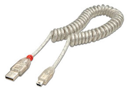 Lindy 31925 Cavo USB 2.0 Spiralato Tipo A/Mini-B, 2 m, Trasparente