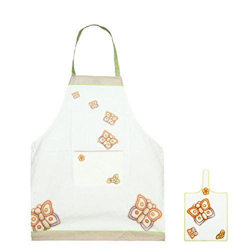THUN ® - Set Linea Farfalla Tagliere in Porcellana - 21 x 19 cm (+10,5 cm Manico) con Grembiule, Cotone, 78 x 64 cm