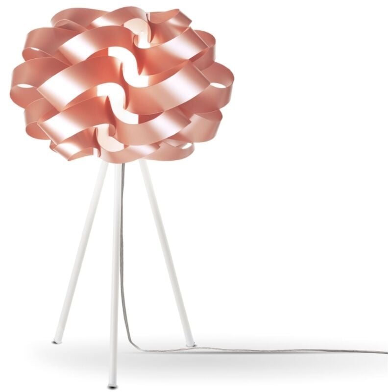 Collezione Cloud LINEE MORBIDE E AVVOLGENTI COME UNA SOFFICE NUVOLA Lampada da tavolo moderna a 1 luce realizzata in polilux rame con base a treppiede e cavo trasparente lungo 180 cm. Il diffusore è realizzato da fogli in polilux, tutti intrecciati fra loro, che formano una sfera rotonda che emette una luce soffusa e delicata. Ben si adatta ad illuminare con grazia ed eleganza salotti, cucine, ingressi, camere da letto, uffici, dallo stile moderno e contemporaneo. Il Polilux, oltre a creare nell'ambiente un senso di leggerezza, è atossico, versatile, non ingiallisce nel tempo e di facile pulizia domestica. Disponibile in diverse misure e in varie finiture. Soffice come una nuvola baciata dai raggi del sole, dalle linee morbide e avvolgenti, le lampade della collezione Cloud creano eleganti e ricercate forme di luce di grande effetto scenico.