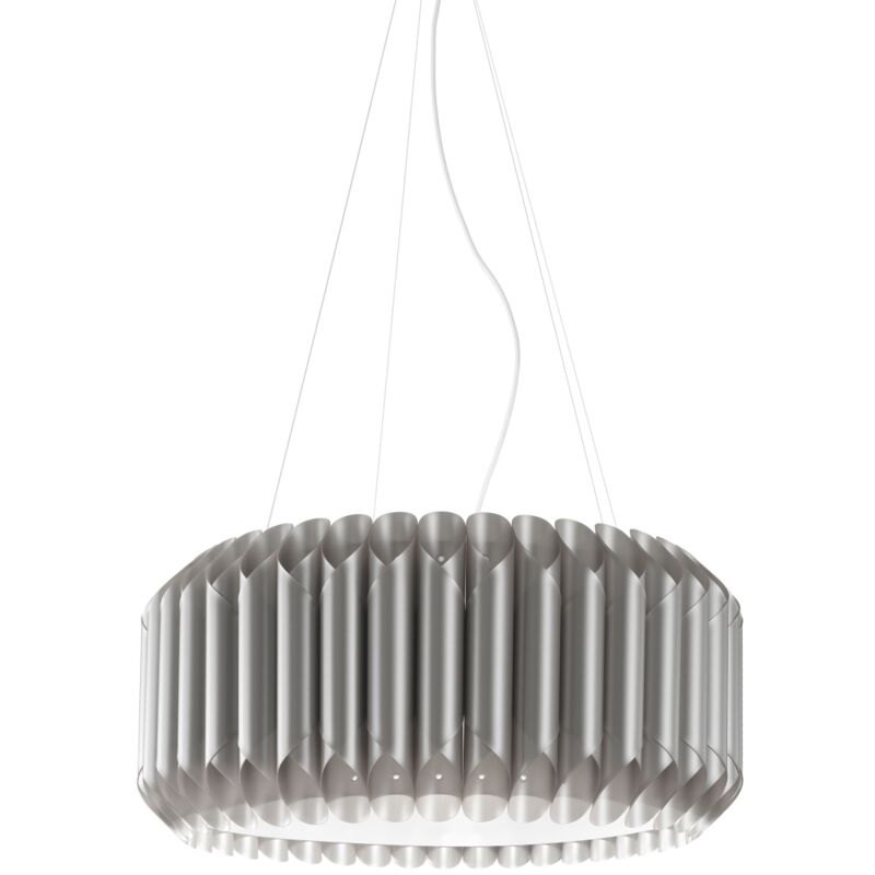Collezione Louise MAESTOSITA' E DELICATEZZA Sospensione a 3 luci in polilux silver, realizzata da molteplici fogli arrotolati su se stessi e affiancati tra di loro a formare un cerchio;