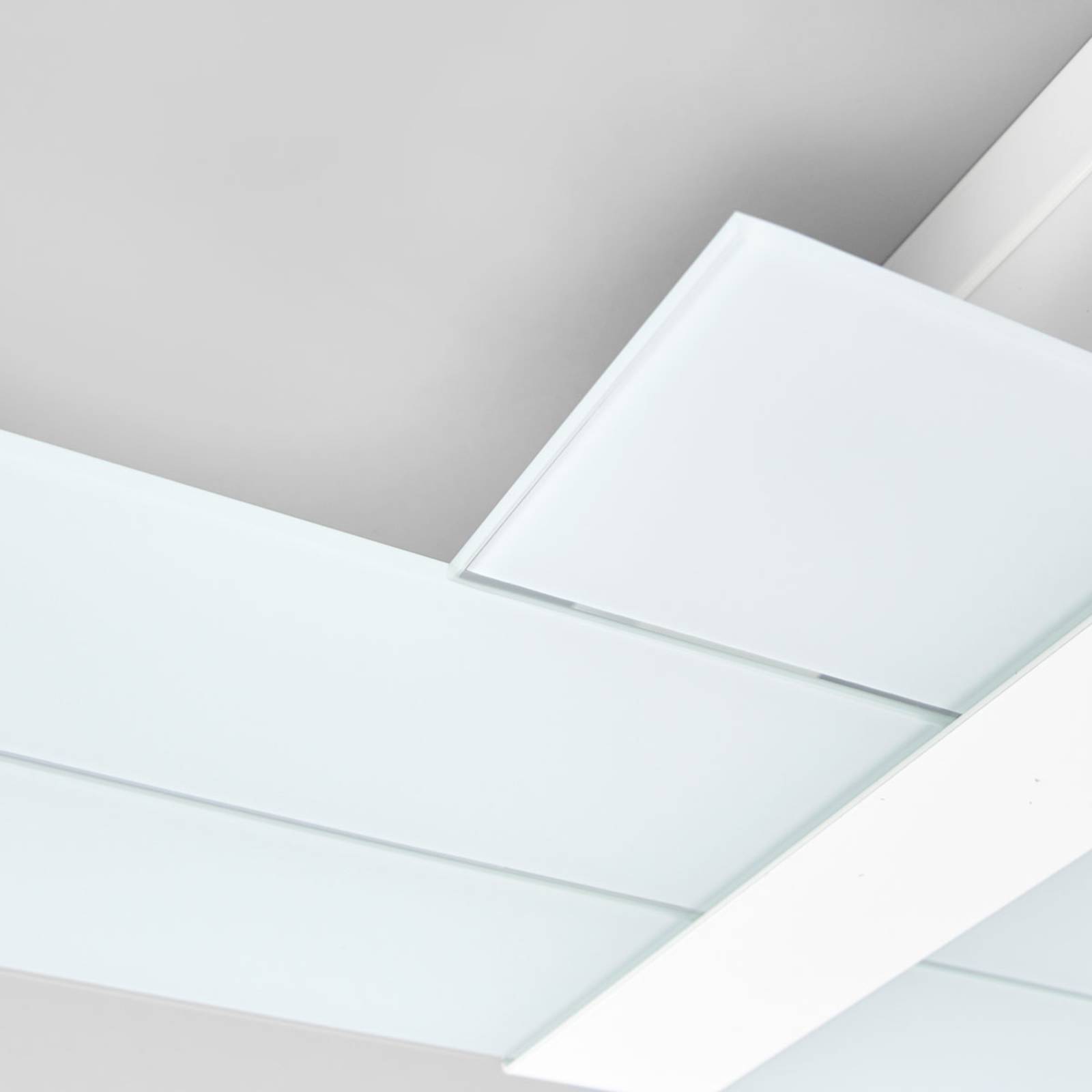 Plafoniera Triad moderna e astratta per spazi abitativi contemporaneiLa plafoniera Triad è costituita da metallo laccato bianco come struttura di base. A scelta, una delle lastre di vetro che fungono da paralume è colorata in viola o arancione. Triad si inserisce negli spazi abitativi moderni, che incanta con il suo fascino individuale.