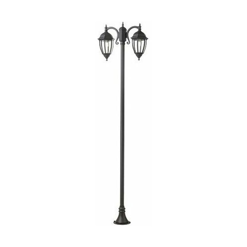 Palo in pressofusione di alluminio. Diffusori in vetro trasparente molato e curvato. Triangolo di fissaggio a terra. Altezza max lampada: 200mm. Alimentazione 230 V ~ 50 Hz. Classe di protezione: IP43 Numero lampade: 2 Potenza massima lampade: 60W