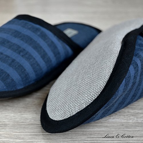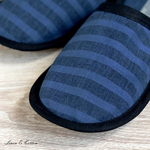 LINEN & COTTON Pantofole di Lino a Casa Uomo/Donna AKIRO - 100% Lino, (EUR 45-46), Nero/Denim Blu