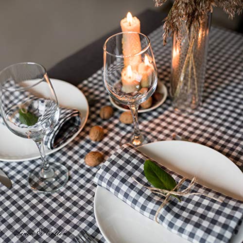 LINEN & COTTON Runner da Tavola di Stoffa a Quadretti Estella - 100% Lino, Grigio Bianco (40 x 350 cm) Lungo Largo Rustico Country per Casa Cucina Tavolo da Pranzo Caffe Ristorante Primavera Pasqua