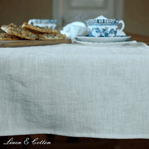 LINEN & COTTON Runner da Tavolo Elegante Rustico, 100% Lino Lavato - Bianco Latte (44 x 180cm)