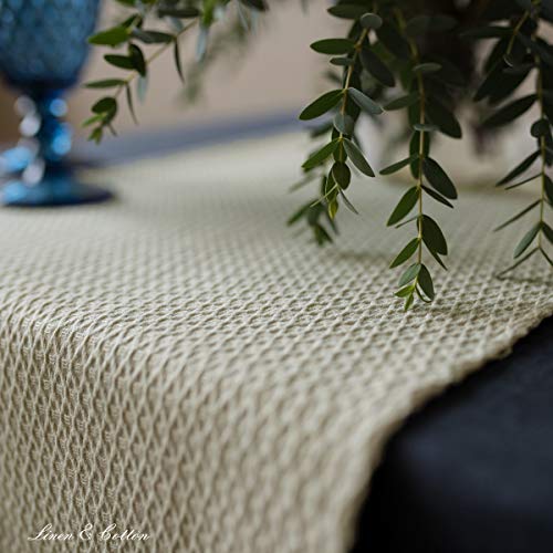 LINEN & COTTON Runner da Tavolo Elegante in Tessuto Maribella - 25% Lino, 75% Cotone, Beige (40 x 90 cm) Guida da Tavola di Stoffa Piccolo Corto per Casa Cucina Mobile TV Tavolino Caffe Soggiorno