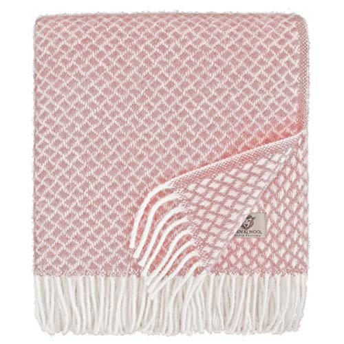 LINEN & COTTON Soffice Calda Coperta Copriletto Plaid Sofia con Frange - 100% Pura Lana Neozelandese, Rosa (130 x 170 cm) per Sofa Divano Sedia Soggiorno Letto Viaggio Picnic Esterno Inverno Multiuso